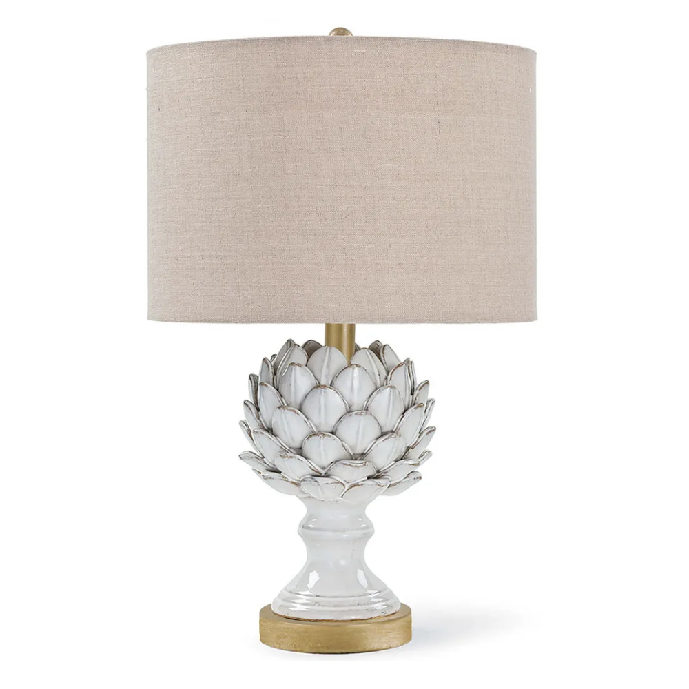 Уникальная настольная лампа “Мерида” в виде артишока, которая станет прекрасным дополнением к вашему интерьеру. Керамический корпус лампы выполнен в белом цвете с глянцевыми золотистыми акцентами на кончиках каждого листа, создавая впечатление, будто они слегка состаренные. Этот необычный элемент дизайна придаст лампе особый шарм и внесет ноту эстетики в ваш интерьер. Основание лампы выполнено из матового металла в цветовой гамме – латунь, что добавляет еще больше визуального интереса и подчеркивает изящные линии и формы предмета. Круглая форма абажура идеально согласуется с общим стилем лампы и создает гармоничное зрительное впечатление. Кроме своего привлекательного внешнего вида, эта лампа также обеспечивает приятное и мягкое освещение в комнате. Вы сможете создать уютную и расслабляющую атмосферу, выбрав подходящую лампочку с мягким или теплым светом. Прекрасно подойдет для использования в спальне, гостиной или рабочем кабинете. Кроме того, эта лампа идеально впишется в любой стиль интерьера. Белый и золотой цвета являются классическими и всегда актуальными, а форма артишока добавляет оригинальности и эксцентричности. Она будет прекрасным дополнением как к современной обстановке, так и к классическому или винтажному стилю. Кроме того, размеры этой настольной лампы позволяют разместить ее на любой поверхности, будь то стол, тумбочка или прикроватная табуретка. Она займет минимум места, но при этом станет прекрасным акцентом в вашем интерьере.