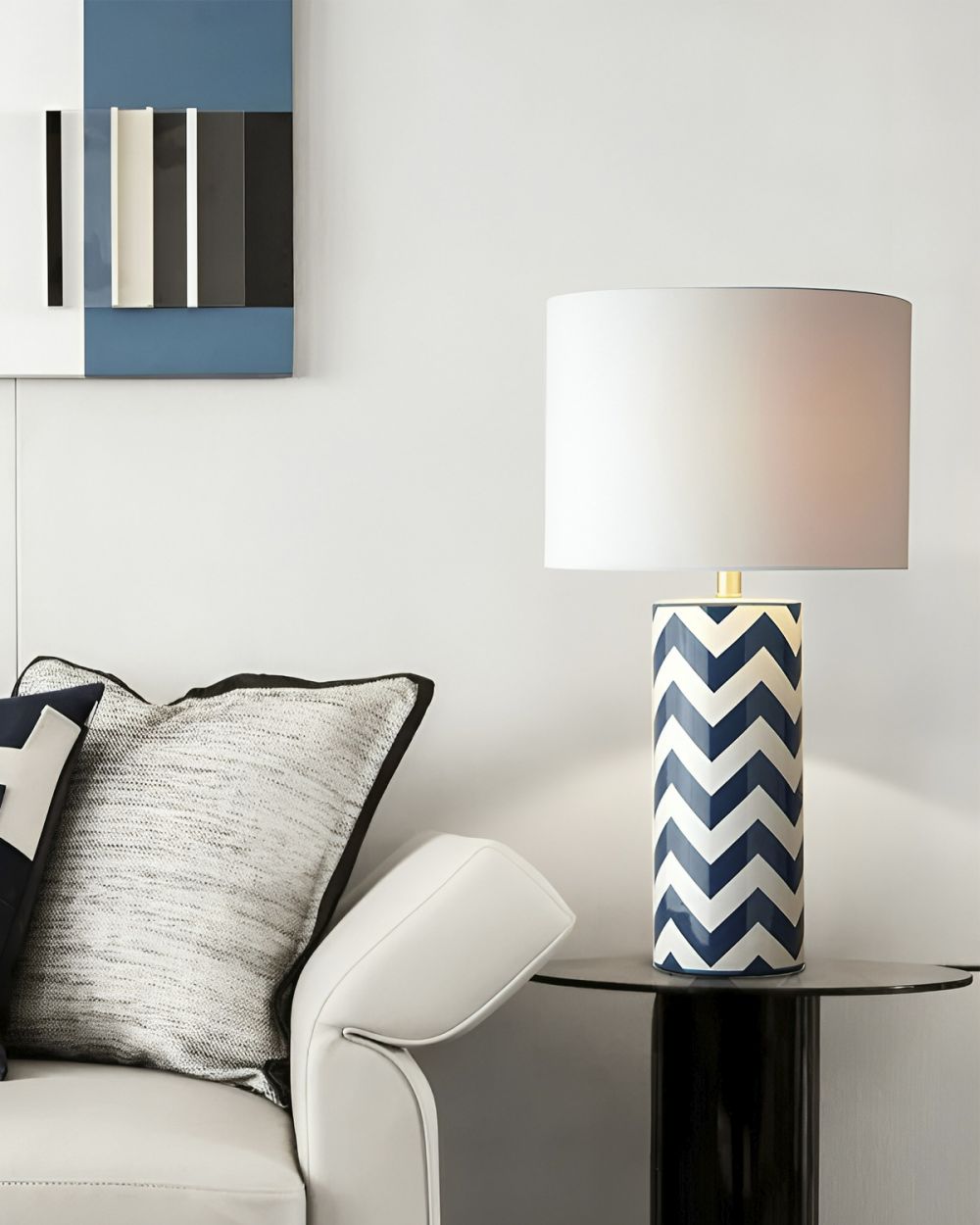 Синяя настольная лампа “Ванесса” – это керамическое основание, которое украшено шевронными узорами синего цвета. Этот стильный элемент декора, выполненный в смелом дизайне, станет гармоничным дополнением любого интерьера. Шевронные узоры прекрасно вписываются в современные тренды декорирования и придают лампе особую изюминку. Благодаря цветовой гамме в глубоком синем оттенке, эта лампа создает атмосферу уюта и стиля в любом помещении. Основание лампы обладает устойчивой конструкцией, что гарантирует ее стабильность и безопасность в использовании. Благодаря этому вы можете поставить ее на любую поверхность и не беспокоиться о том, что лампа упадет или повредит мебель. Она идеально подходит для использования на рабочем столе, тумбочке, прикроватном столике или в гостиной. Управление лампой происходит с помощью удобного переключателя, расположенного на проводе. Это позволяет легко и быстро включать и выключать лампу без необходимости подниматься с места. Безусловно, это удобство оценят особенно те, кто использует лампу на рабочем столе или возле кровати. Обладая прекрасным дизайном и отличными характеристиками, эта настольная лампа является идеальным выбором для создания уютной и стильной атмосферы в вашем доме или офисе. Она станет не только источником освещения, но и украшением вашего пространства.