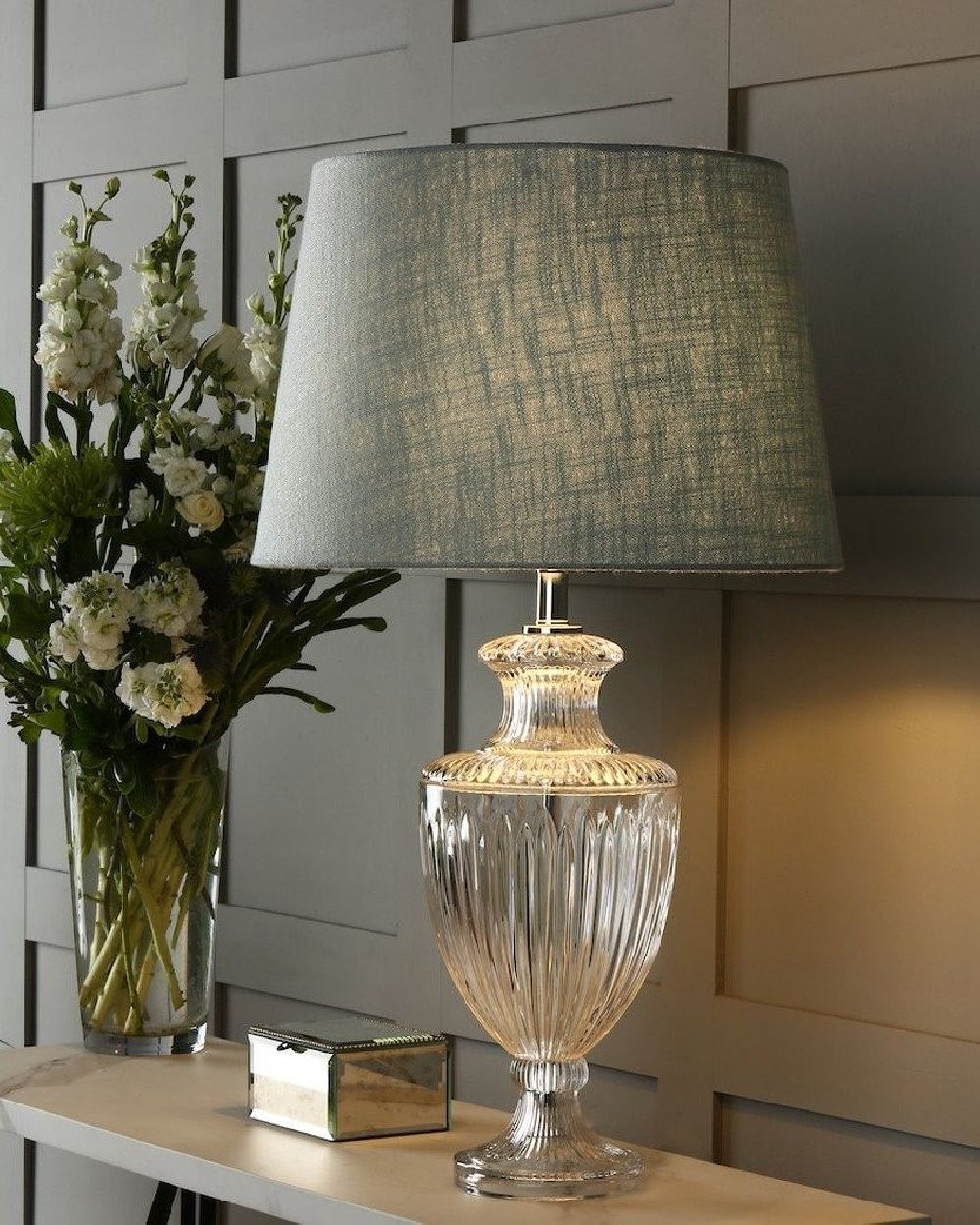 Прозрачная, блестящая и очень стильная настольная лампа из хрусталя “Абель” – это идеальное дополнение к вашему интерьеру. Эта лампа представляет собой современную интерпретацию традиционной формы и впечатляет своим элегантным и универсальным дизайном. Лампа изготовлена из полированного стекла, что придает ей блеск и завораживающий вид. Форма лампы напоминает классическую рифленую вазу, добавляя этому изделию особую изящность. Но самое потрясающее – это отражение света на поверхности хрусталя, создающее множество ярких и красочных оттенков. Основание лампы выполнено из хромированной фурнитуры, которая идеально сочетается с блеском хрусталя. Этот хромированный детальный элемент придает лампе современный и стильный вид, делая ее привлекательной для любого интерьера. Абажур лампы имеет серый цвет, который дополняет всю композицию. Серый цвет абажура является нейтральным и универсальным, поэтому лампа “Абель” подойдет к любой цветовой гамме вашего интерьера, добавляя нотку изысканности и элегантности. Эта настольная лампа станет ярким акцентом в вашем доме или офисе.