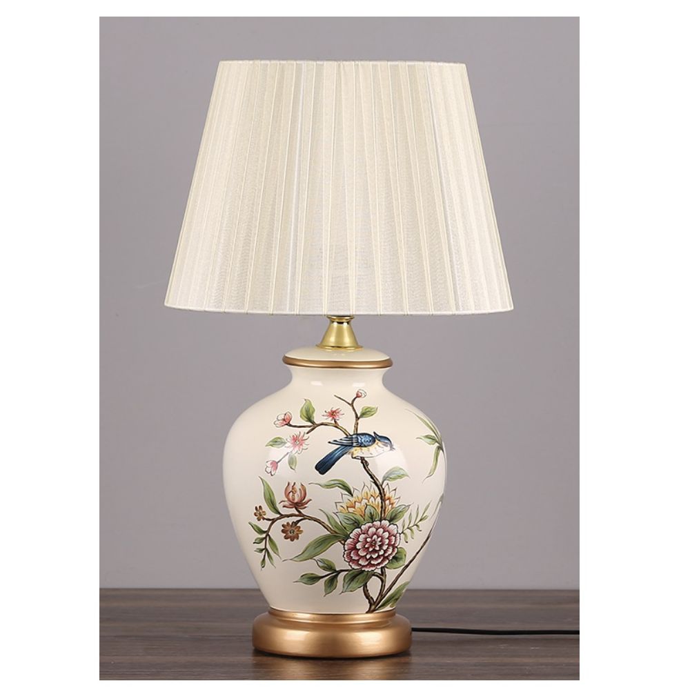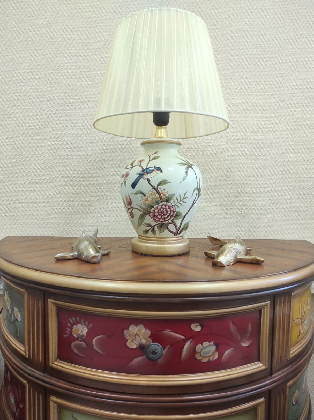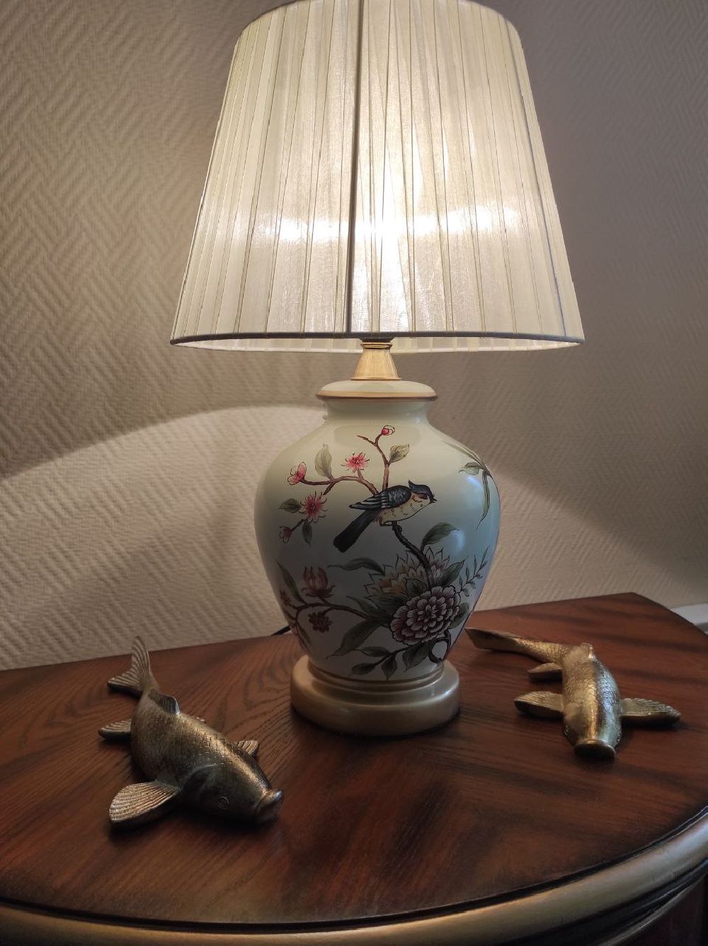 Настольная лампа «Птичка на ветке» — это воплощение изысканности и уютной атмосферы в вашем доме. Эта лампа станет не просто источником света, а настоящим арт-объектом, который привнесет в ваш интерьер очарование французского Прованса, элегантность классики и экзотические ноты шинуазри. Нежная роспись с птицами на керамическом основании оживит любую комнату, создавая спокойную и романтичную обстановку.