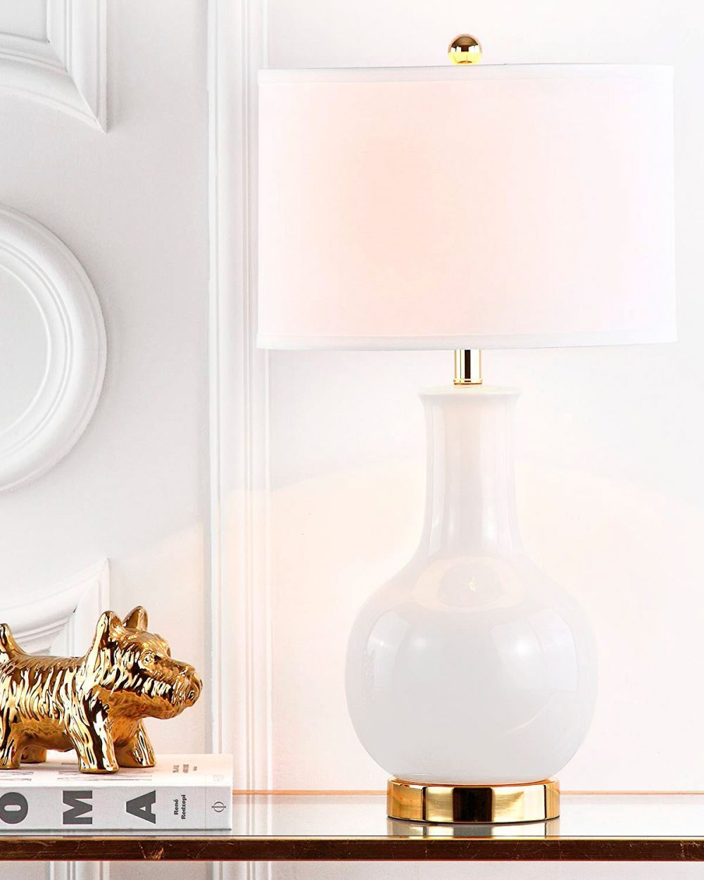 Основание белой керамической настольной лампы “Майло” представляет собой элемент декора похожий по форме на кувшин, конструкция которого крепится на глянцевой золочёной металлической подставке. Классический силуэт светильника завершает белый хлопковый абажур, который обеспечит мягкий и приглушенный света для чтения или работы. Светильник “Майло” – это красивый и функциональный осветительный прибор, который прекрасно подойдёт как под современный, так и под классические интерьеры.