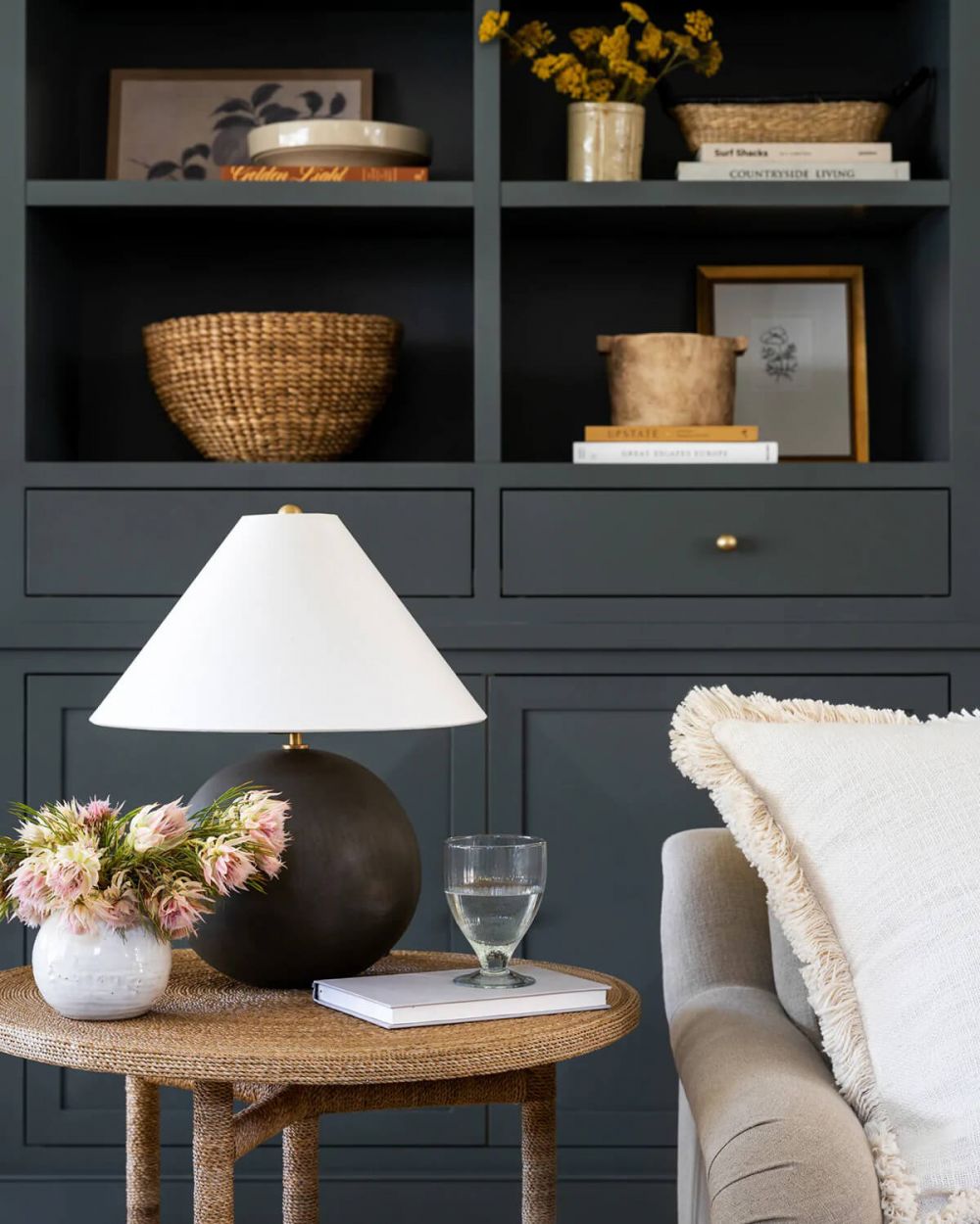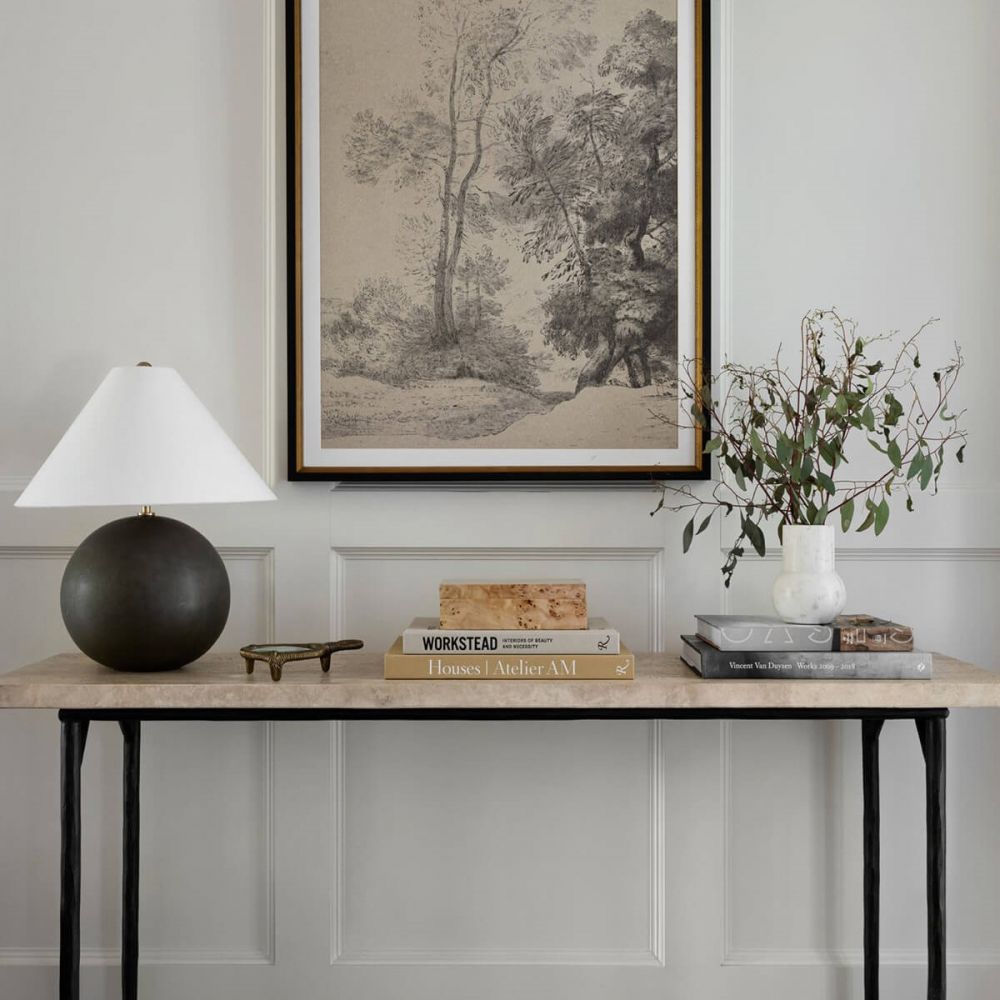 В гостиной. На журнальном столике или консоли лампа станет арт-объектом, притягивающим внимание и задающим тон всей комнате.