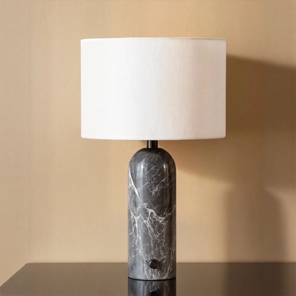 Если вы ищете не просто настольный светильник, а выразительный элемент декора с характером, лампа «Эдвин» из серого мрамора с белым абажуром — ваш идеальный выбор.