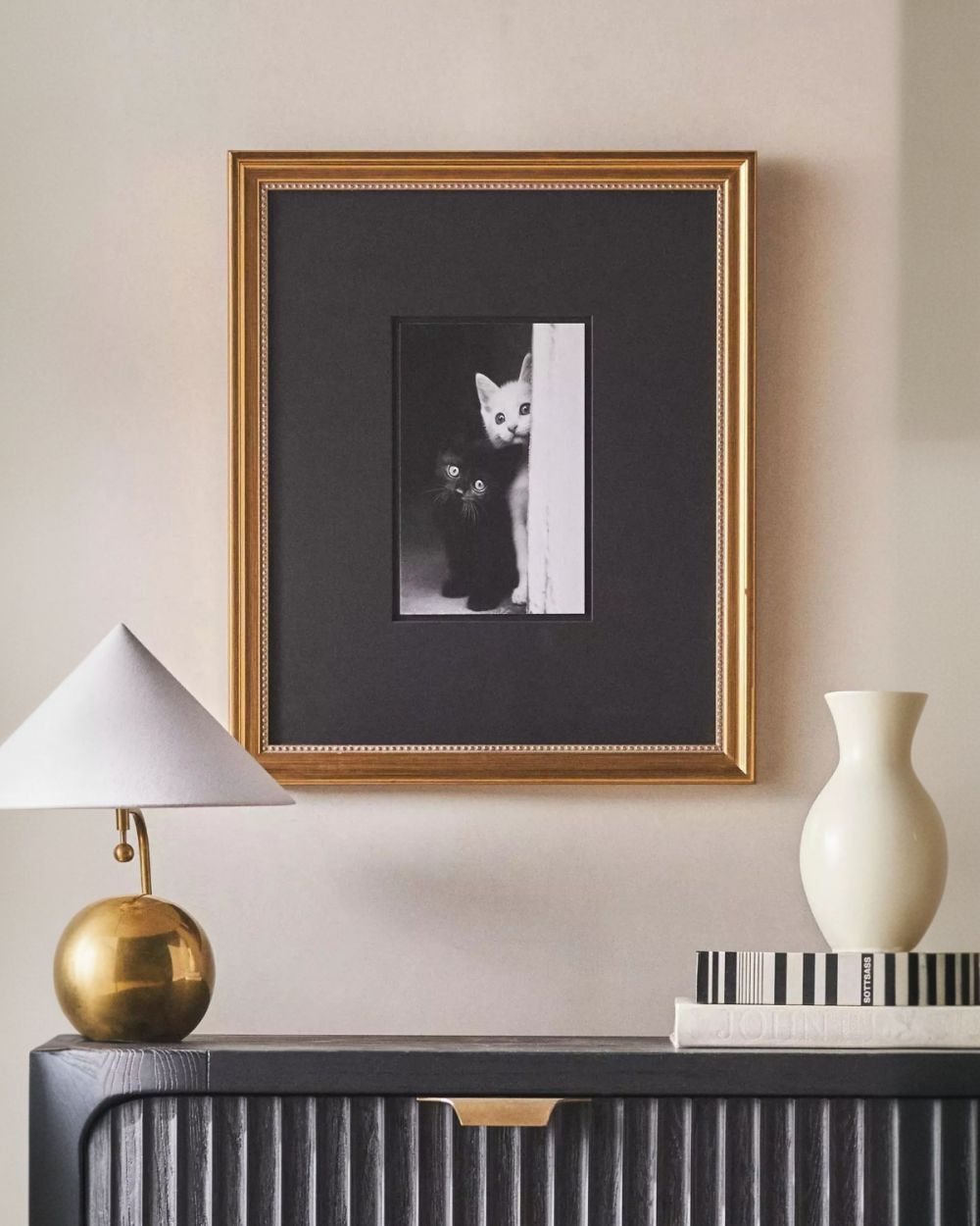 Консоль в гостиной: Золотистое основание будет красиво отражать свет.