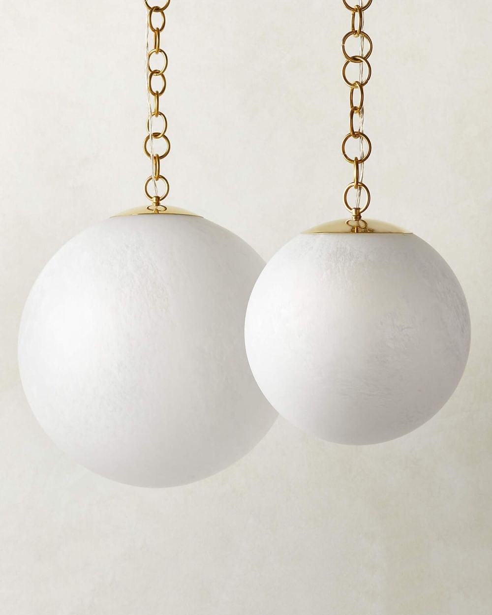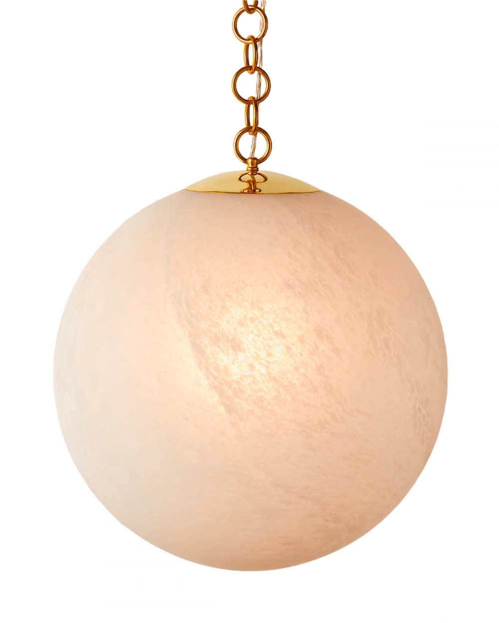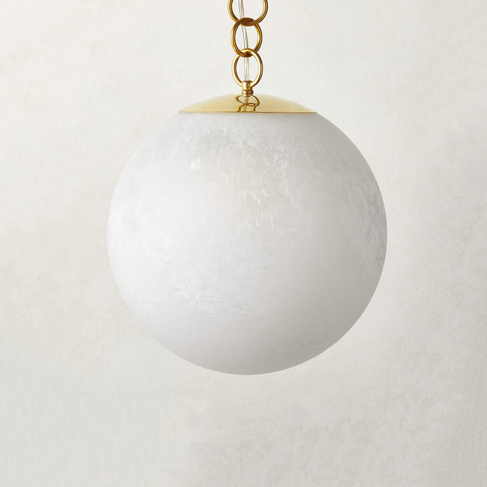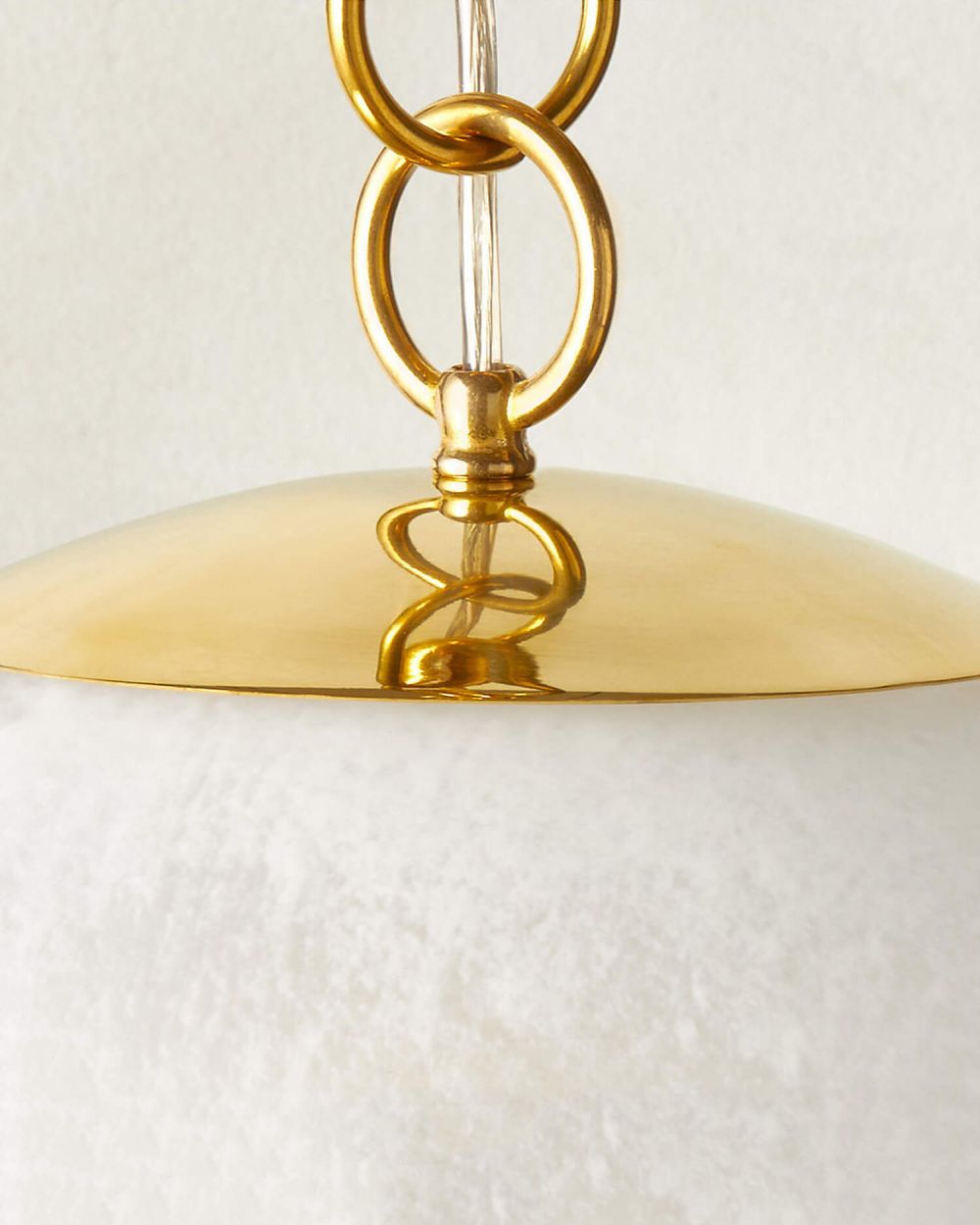Большой «Мэйси» с диаметром 50 см — это другое. Это масштаб, который невозможно игнорировать. Один такой светильник заменяет многорожковую люстру, но при этом выглядит современно, легко и абсолютно невесомо — благодаря текстурированному стеклу и длинной золотой цепи.