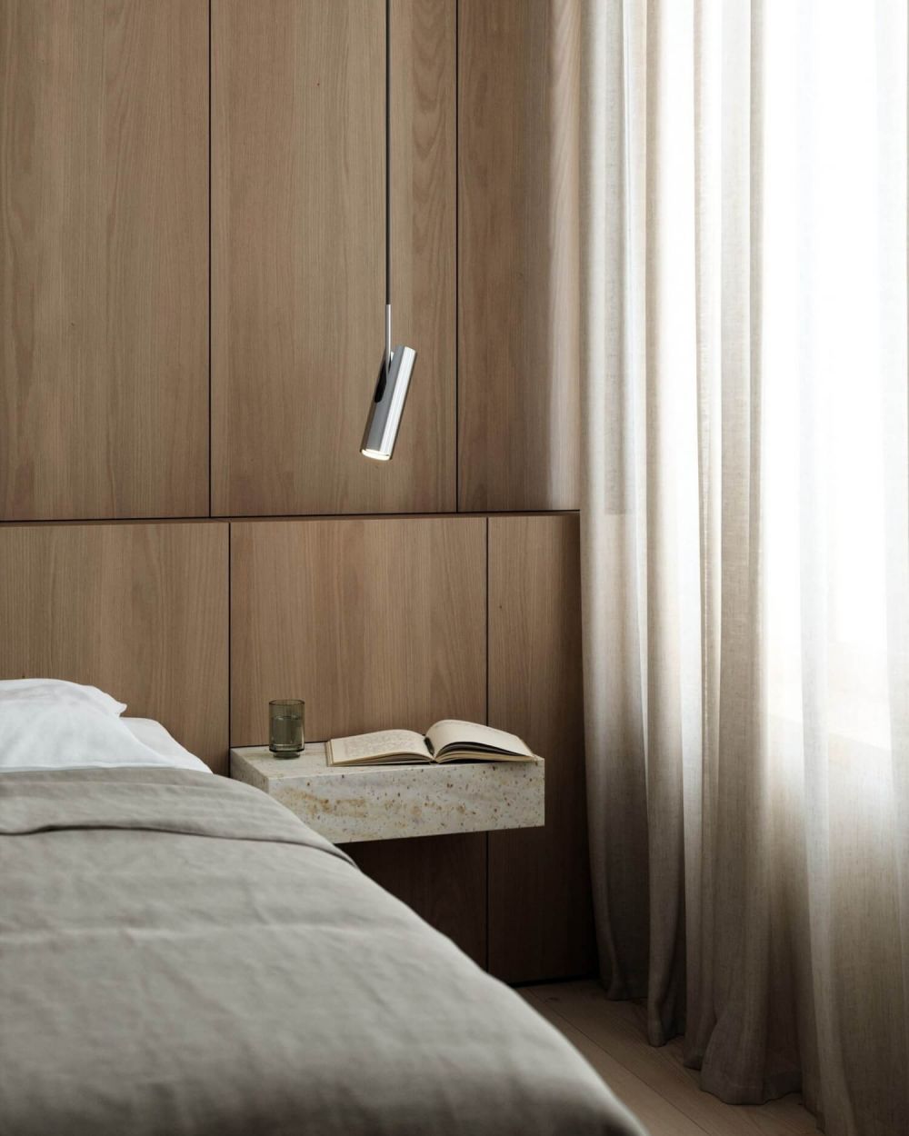 Его вытянутая цилиндрическая форма и холодный серебристый блеск добавляют интерьеру архитектурной четкости, не нарушая принципов минимализма.
