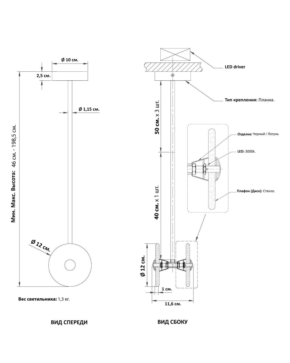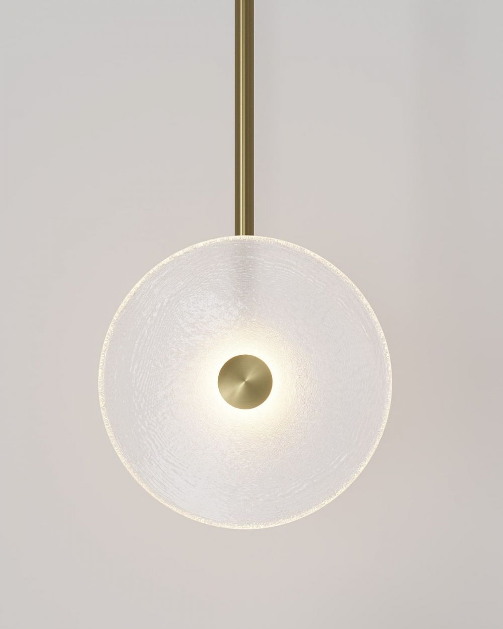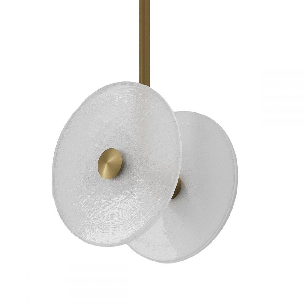 «Милфорд» — это слоеный пирог из света и стекла. Два прозрачных диска, нанизанных на латунный стержень, создают эффект парения. Они не перегружают пространство, не собирают пыль, не требуют ухода. Просто свет, стекло и металл в идеальном равновесии.