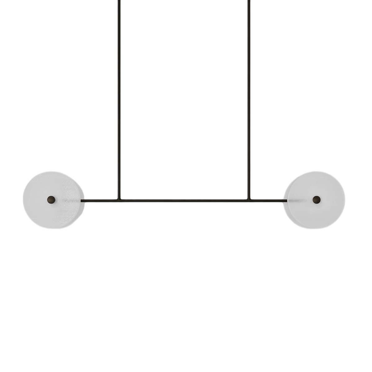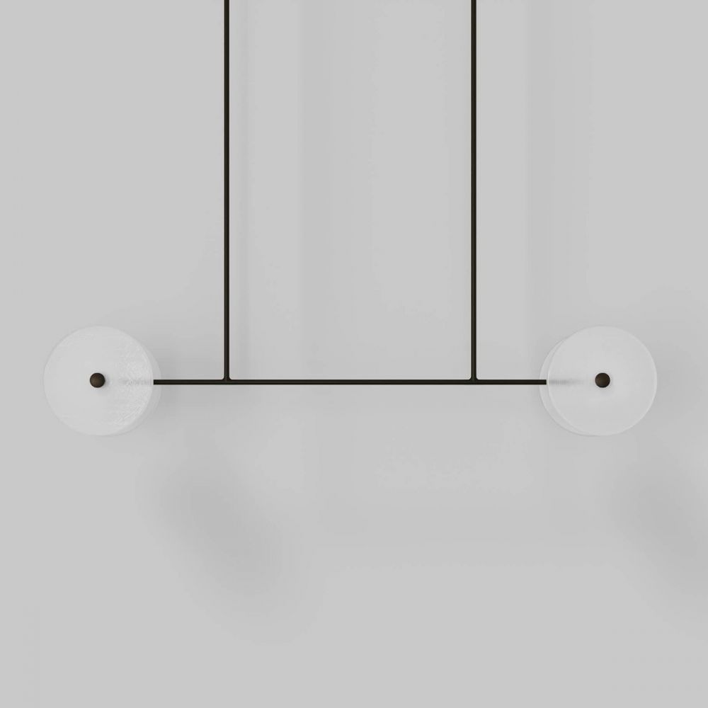 Линейный «Милфорд» — это компромисс между ритмом отдельных подвесов и цельностью монолитной конструкции. Одна длинная черная балка несет на себе четыре прозрачных стеклянных диска. Они не просто висят — они встроены в структуру, создавая ощущение целостности, порядка и архитектурной завершенности.