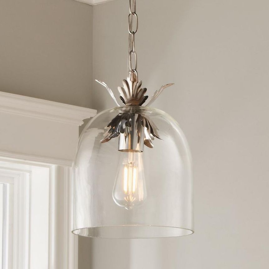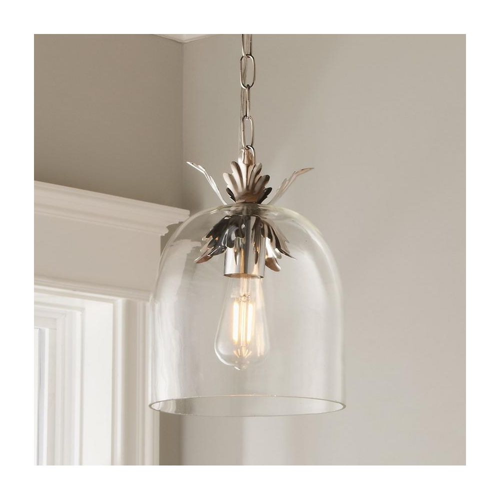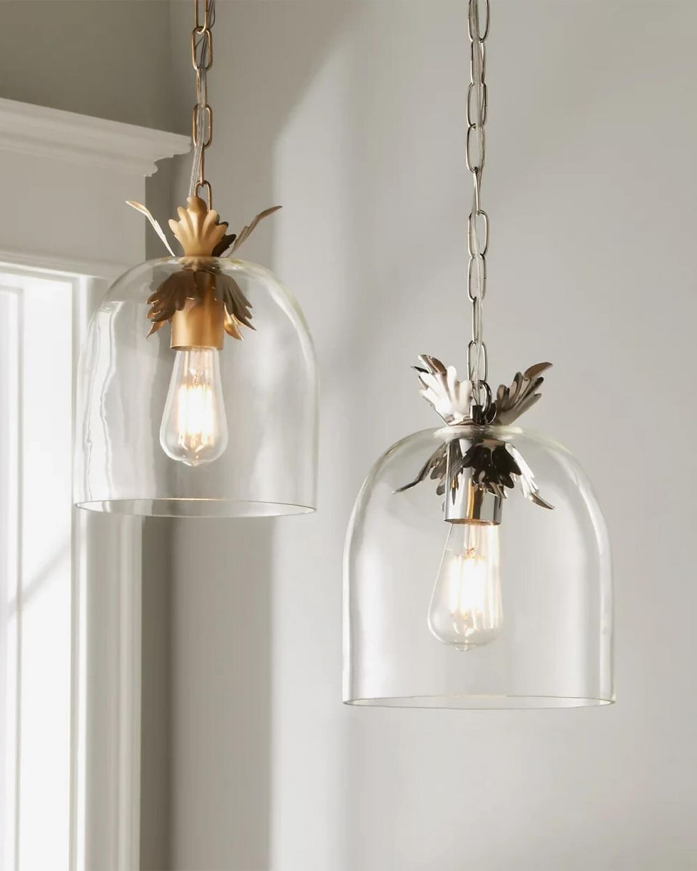 Подвесной светильник «Акант»: прозрачный колокол, серебро и листья из металла