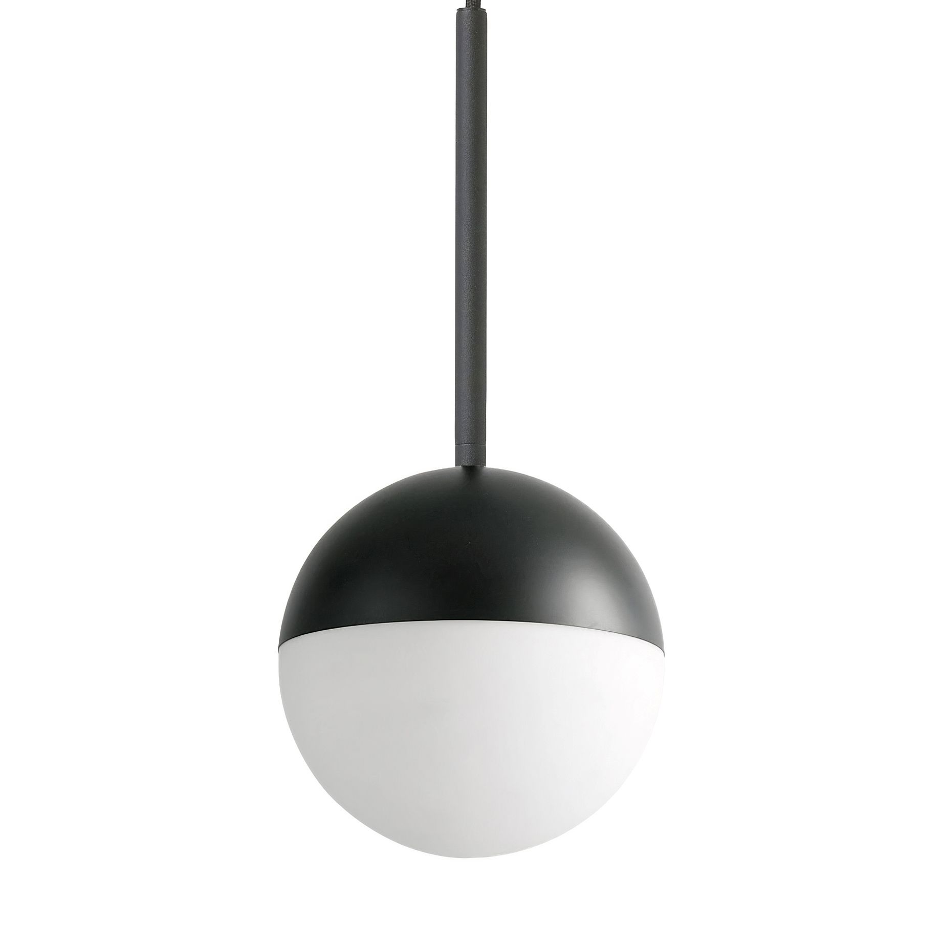 Подвесной светильник «Уорд»: разделенная сфера, черный металл, белый опал