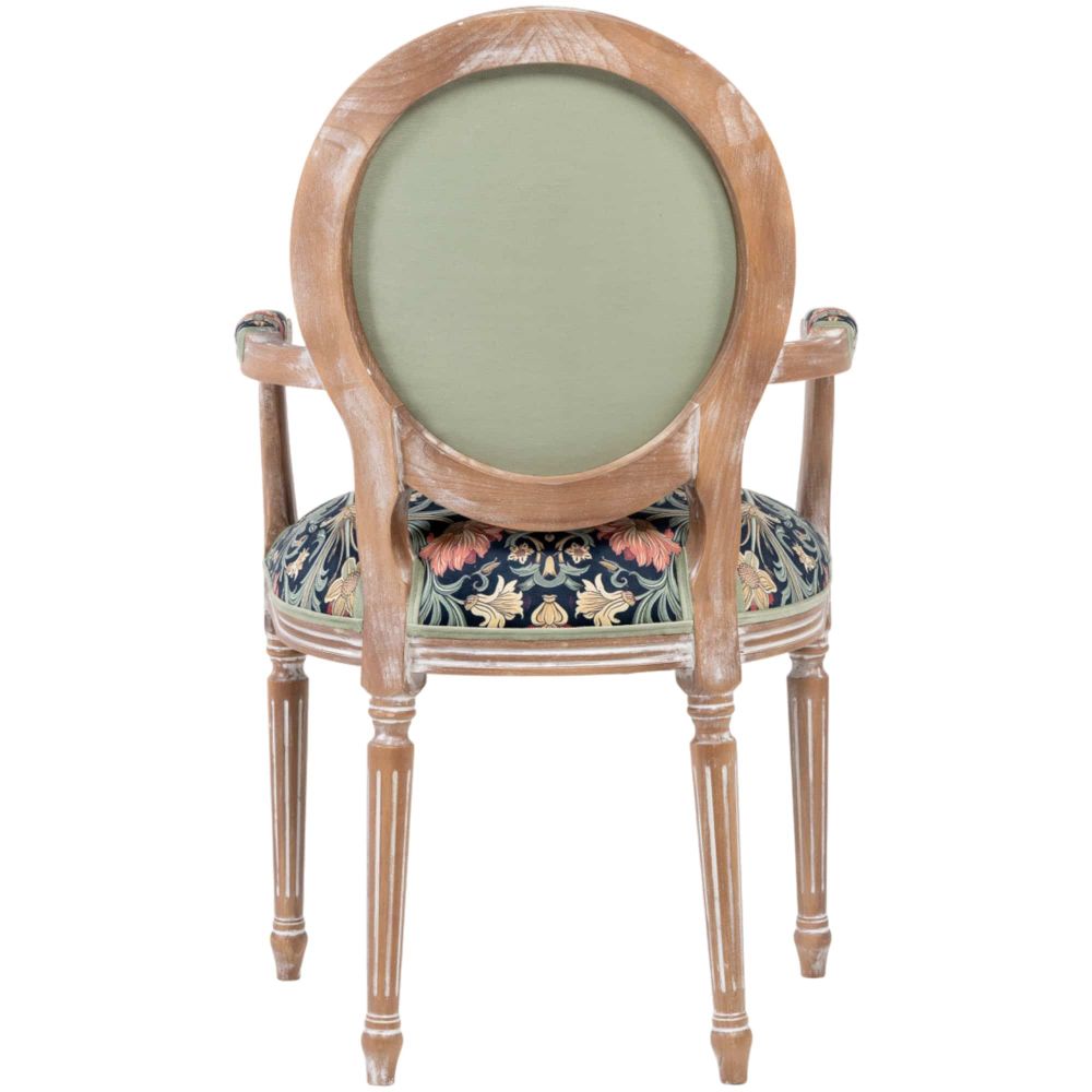 Каркас этого мебельного экземпляра изготовлен из дуба с белой патиной. Патина придает дереву благородный вид и подчеркивает его текстуру. Она также создает эффект старины, делая кресло более привлекательным и ценным. Сочетание темного сиденья с растительным орнаментом и светлого деревянного каркаса делает это кресло универсальным предметом мебели, который подойдет как для классических, так и для современных интерьеров. Его можно использовать в гостиной, спальне, кабинете или библиотеке, где оно станет не только удобным местом для отдыха, но и ярким элементом декора.