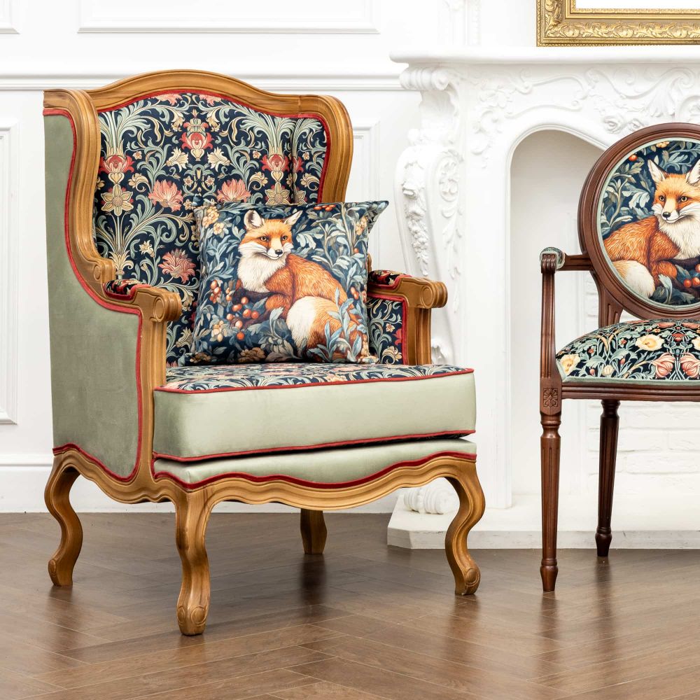 Кресло «Лиса» станет акцентным элементом в интерьере в стиле ар-нуво, эклектики или минимализма. Оно уместно в гостиной, спальне или кабинете, привнося ноту изысканности. Кресло в стиле Уильяма Морриса от «Объекта мечты» – это красота и комфорт для дома, предмет гордости и восхищения.