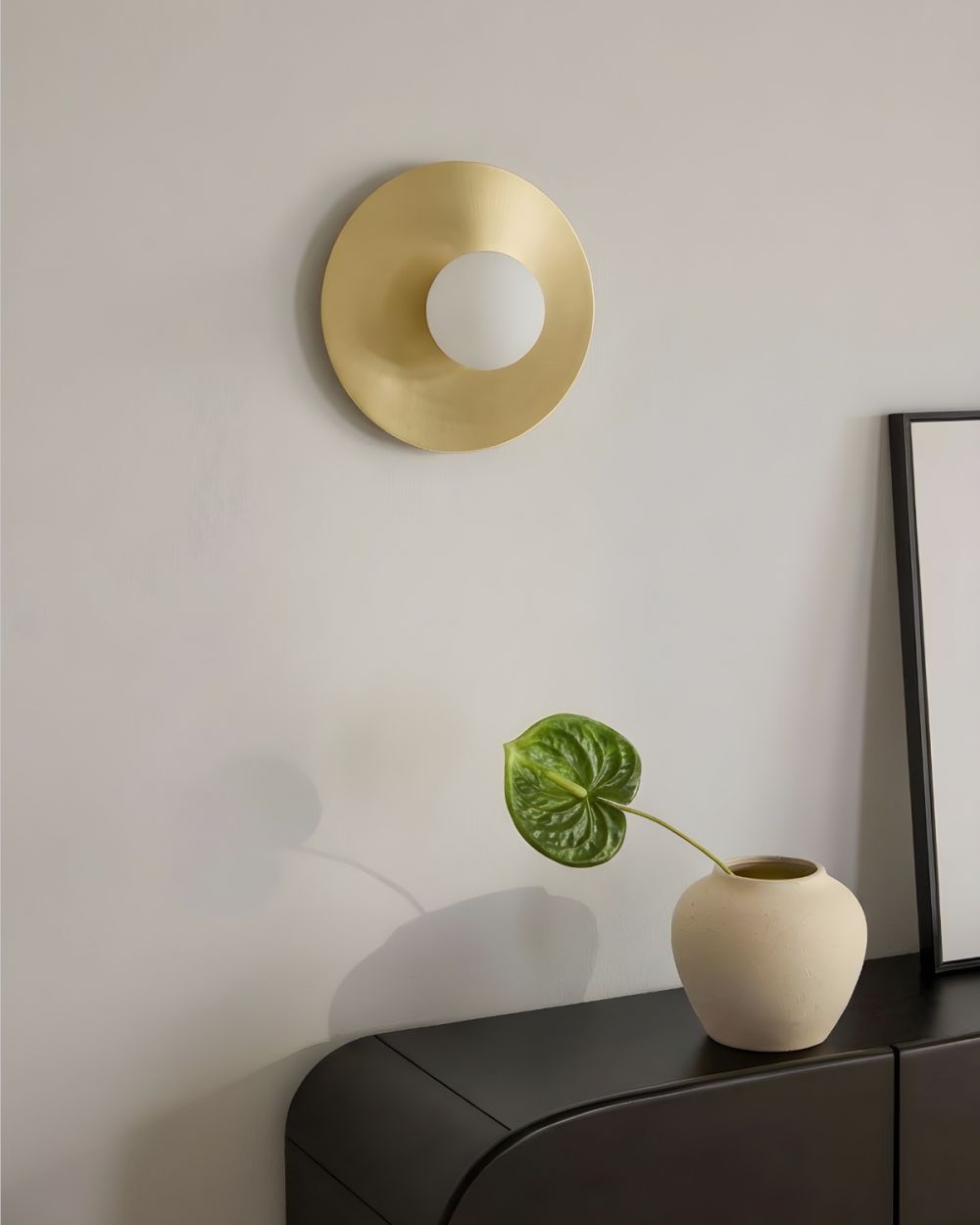 Светильник «Ноа» в латуни становится акцентом в прихожей или холле, задавая тон всему дому. В спальне он создаст камерную атмосферу по бокам кровати. В гостиной поможет зонировать пространство или подсветить картинную галерею. А в коридоре композиция из нескольких таких моделей визуально расширит пространство, добавив ему ритма.