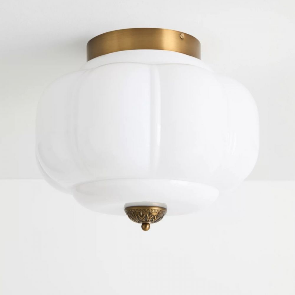Потолочный светильник «Элаиза» решает эту задачу. Это тот случай, когда дизайн работает на атмосферу, а не перегружает пространство. Мягкий молочный плафон из стекла идеально рассеивает свет от трех ламп, наполняя комнату теплом и уютом, а металлическая фурнитура с покрытием «античное золото» добавляет нотку благородной классики.