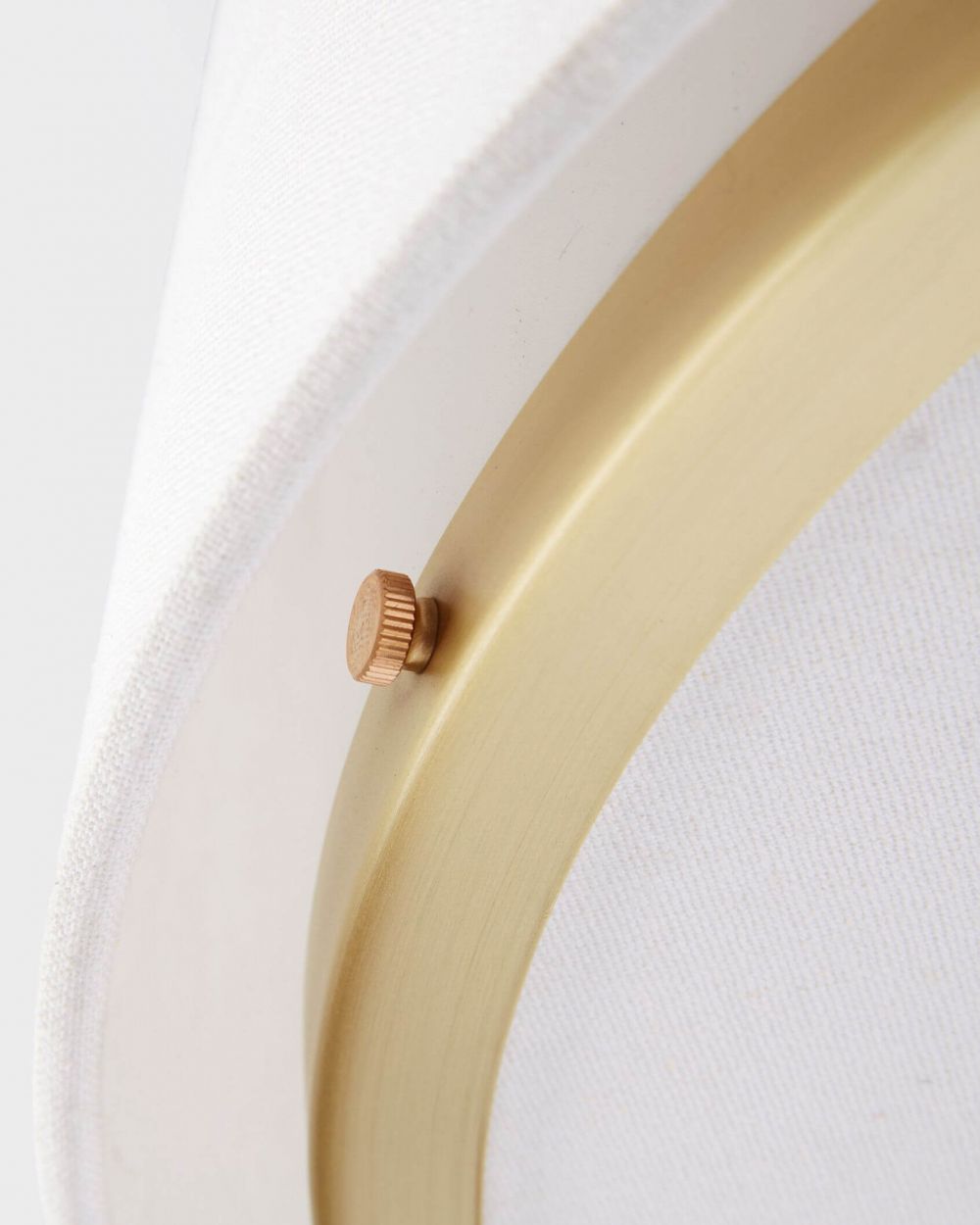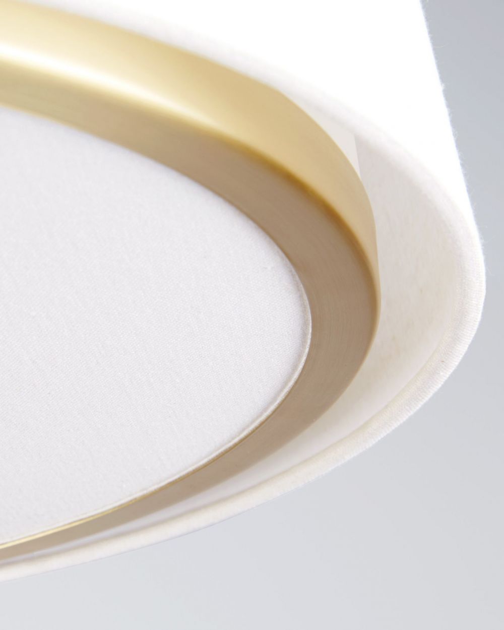 Изюминка модели: Тонкий золотой ободок, обрамляющий нижнюю часть светильника. Эта деталь создает эффект легкости и визуально отделяет тканевый абажур от рассеивателя, делая конструкцию более изящной.