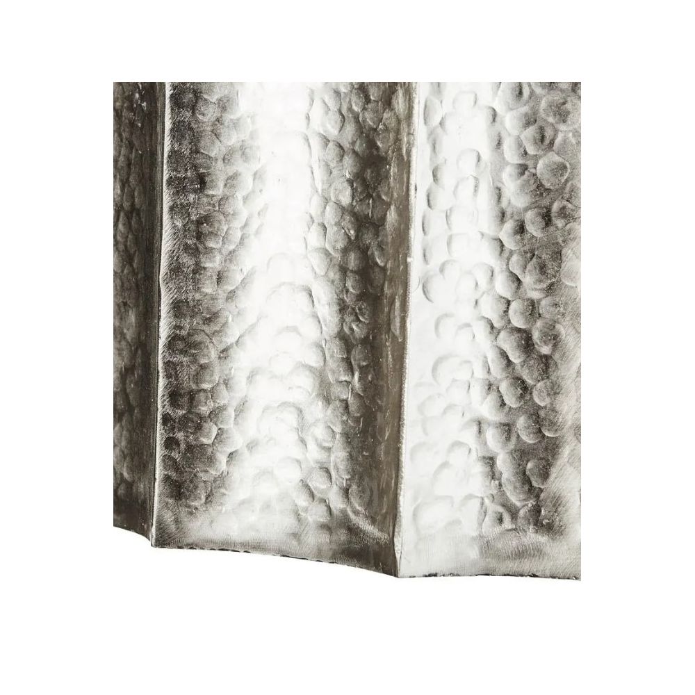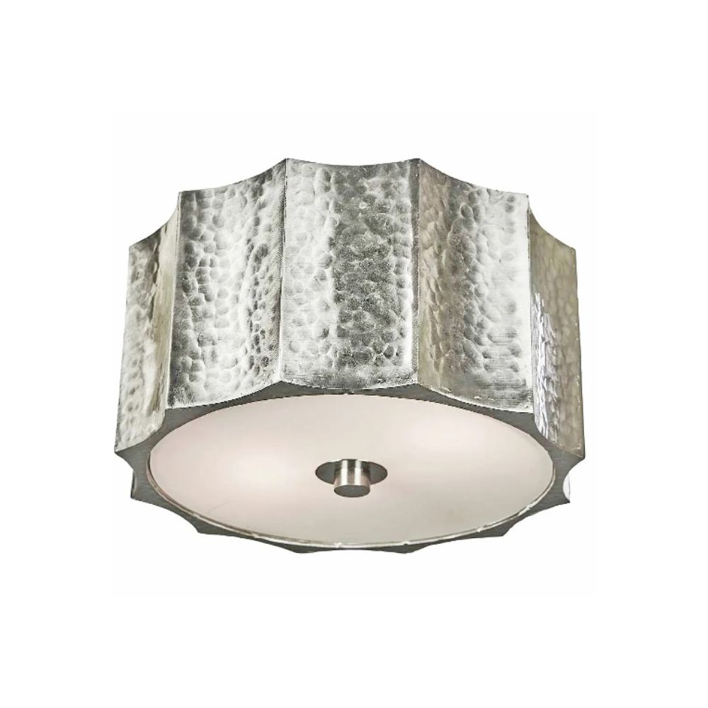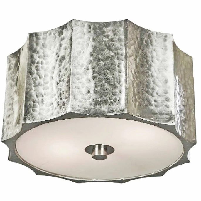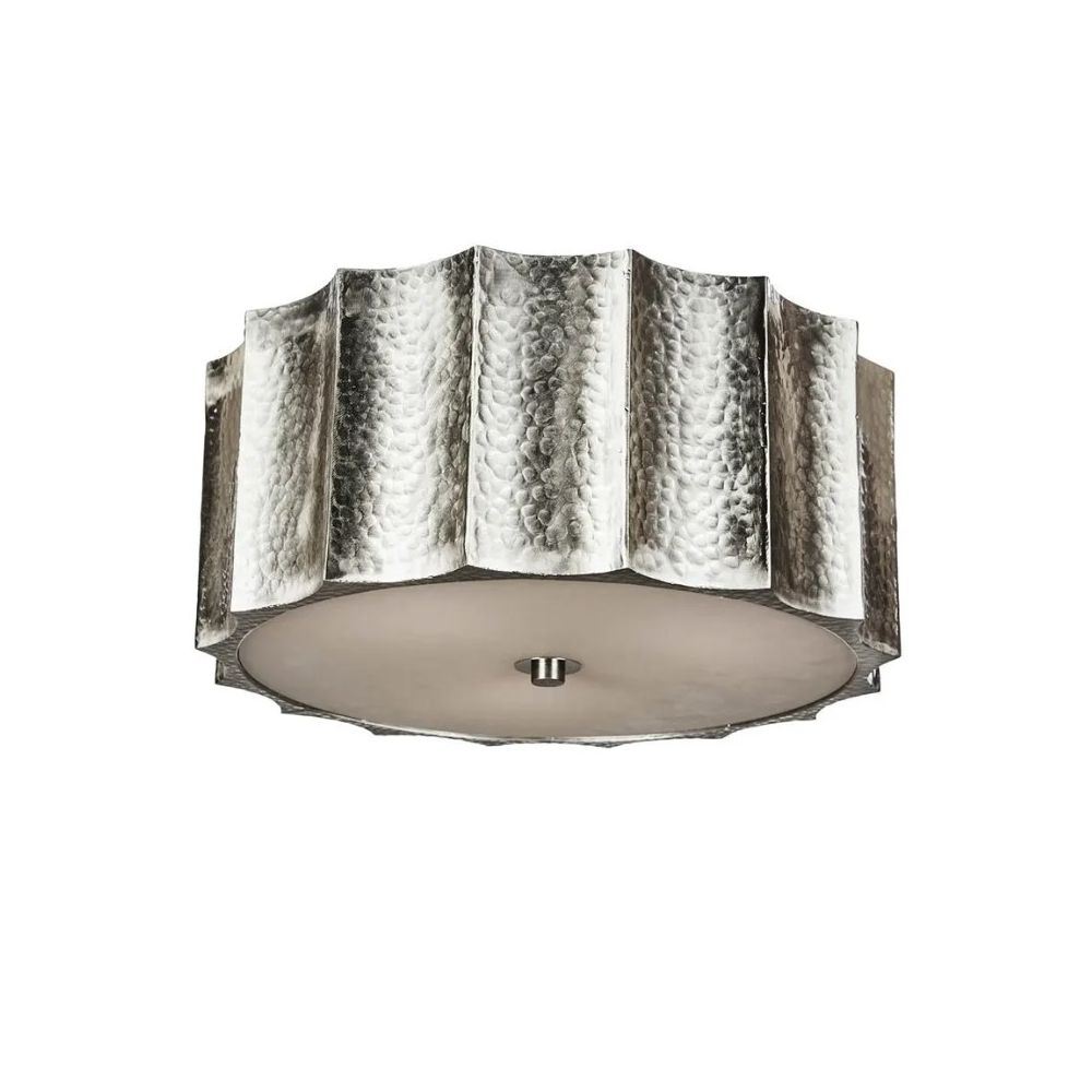 Этот потолочный светильник скрытого монтажа имеет рифленый металлический барабан в форме звезды с великолепной никелированной чеканной текстурой.
