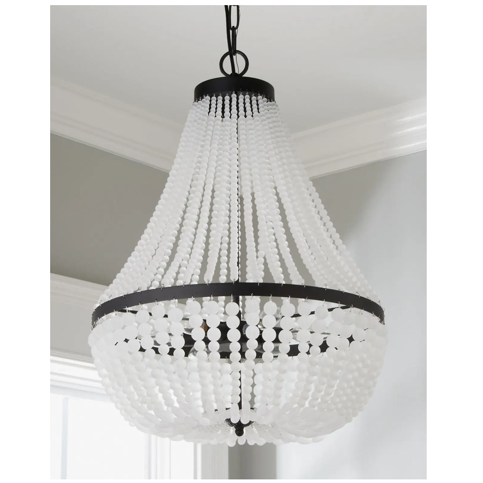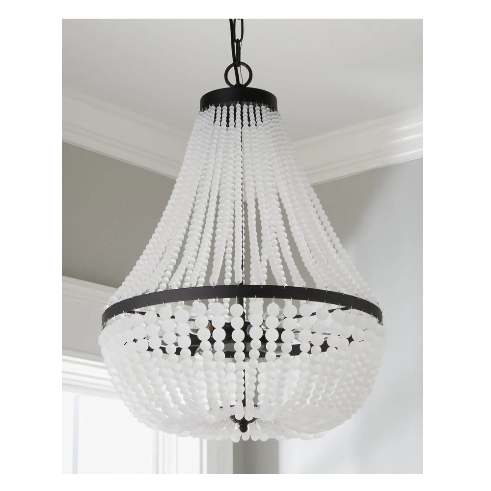 Чёрная люстра “Найджел” – это великолепное сочетание стиля и функциональности. В основании этой люстры лежит прочный и надежный металлический каркас. Он способен выдержать значительную нагрузку, что гарантирует долговечность и безопасность использования. Основным элементом декора этой люстры являются матовые бусины, размещенные в нескольких рядах. Их текстура и приятный на ощупь материал придают интерьеру изысканность и шарм. Бусины создают эффект мягкого рассеянного света, придавая помещению уют и теплоту. Благодаря своей черной окраске, эта люстра станет ярким акцентом в помещении и добавит роскоши и уюта в ваш дом. В центре люстры размещены три лампы, выполненные в стиле спиц. Благодаря такому дизайну, свет равномерно распределяется по всей комнате, создавая приятную атмосферу и комфортное освещение. Люстра “Найджел” идеально подойдет для столовой, спальни или гостиной. Она добавит элегантности и стиля в любое помещение, станет ярким акцентом и создаст неповторимую атмосферу.