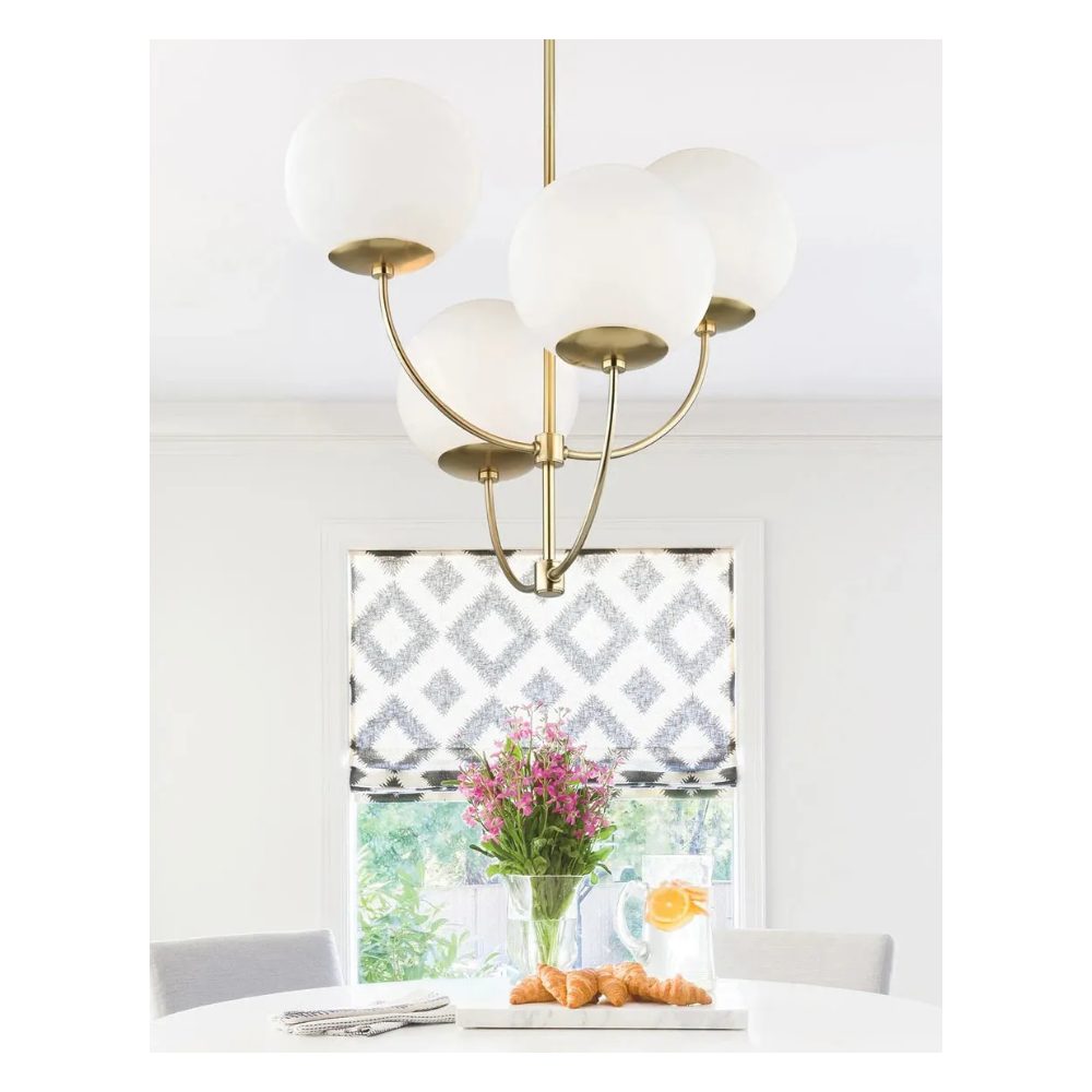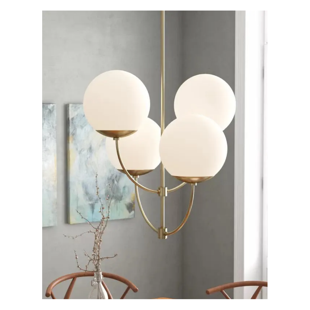 Золотая люстра “Харви” — это современный светильник, который привносит динамичную изысканность в любой интерьер. Четыре белых тонированных шара, вращающихся вокруг центрального полюса, создают эффект легкости и движения, а корпус из полированной латуни добавляет люстре гладкости и утонченности. Многоуровневая подсветка и изогнутые полосы придают изделию воздушность и игривость, превращая его в стильный акцент. Штанга люстры состоит из 5 стержней по 11 см каждый, что позволяет регулировать высоту до 119 см, идеально адаптируя светильник под различные помещения. “Харви” станет центром внимания в вашем доме, создавая атмосферу современного шика и легкости.