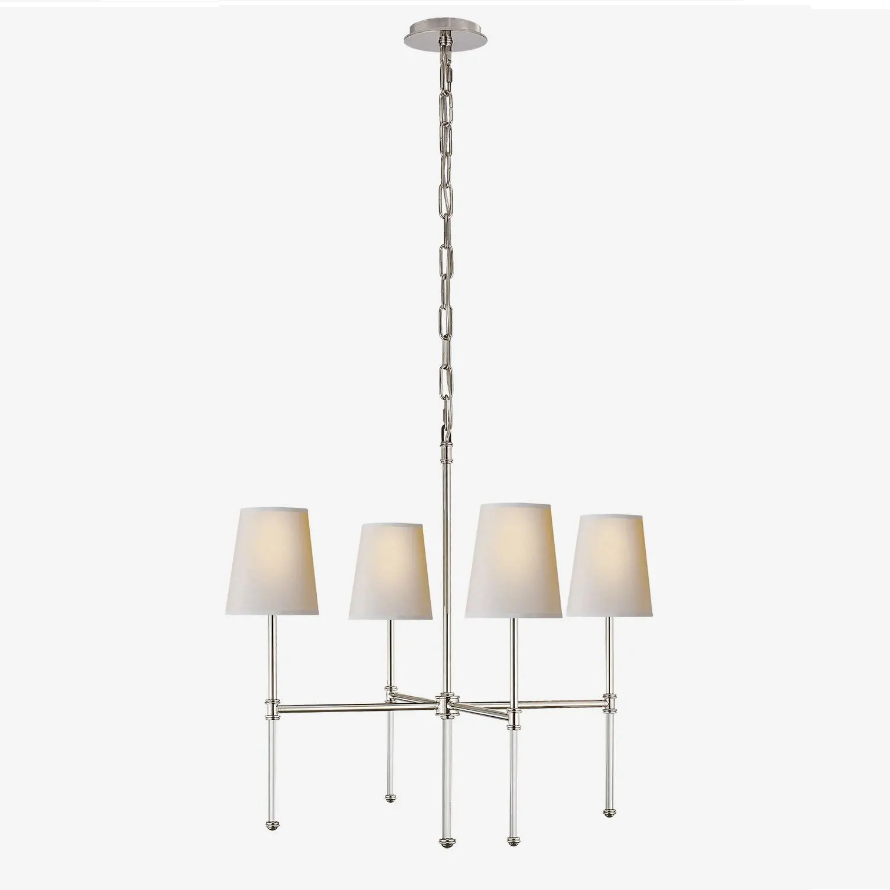 Серебряная люстра “Дэмиан” – это светильник, который искусно сочетает в себе классический стиль с современной функциональностью, он прекрасно впишется в интерьер вашей гостиной, столовой или холла, добавив в него изысканности и роскоши. Основными элементами дизайна “Дэмиан” является его квартет источников света в цветовой гамме – никель, который плавно переходит в изящные акриловые стержни. Этот интересный стилистический ход придает люстре легкость и изящество. Белые плафоны, покрывают каждую лампу люстры “Дэмиан”, они служат не только декоративным элементом, но и выполняют функцию рассеивания света, создавая атмосферу уюта и комфорта. Таким образом, светильник будет не только является элегантным акцентом в вашем интерьере, но и обеспечивает эффективное и приятное освещение помещения!