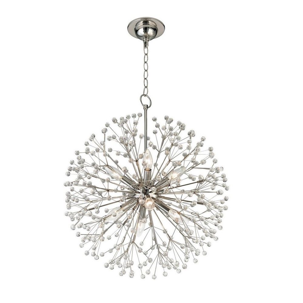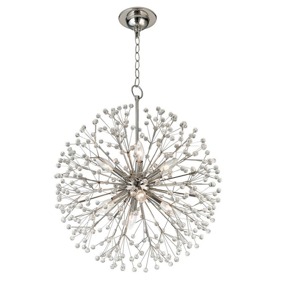 Серебряная люстра “Норвич” – это причудливая форма в виде шара из тонких никелированных стеблей, которые разветвляются, образуя эффектное основания люстры. Усиливают эффект от этой люстры сверкающие хрустальные шарики, расположенные на кончиках каждой из множества ветвей. Люстра напоминает одуванчик, который волшебным образом превращается в мерцающую звезду. Свет, проникающий через хрустальные шары, разбивается на множество лучей, который будет распространяться по комнате, создавая волшебную атмосферу. Она идеально подойдет для гостиной, столовой или спальни.