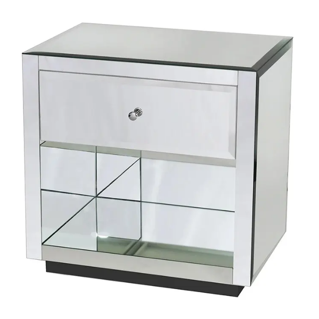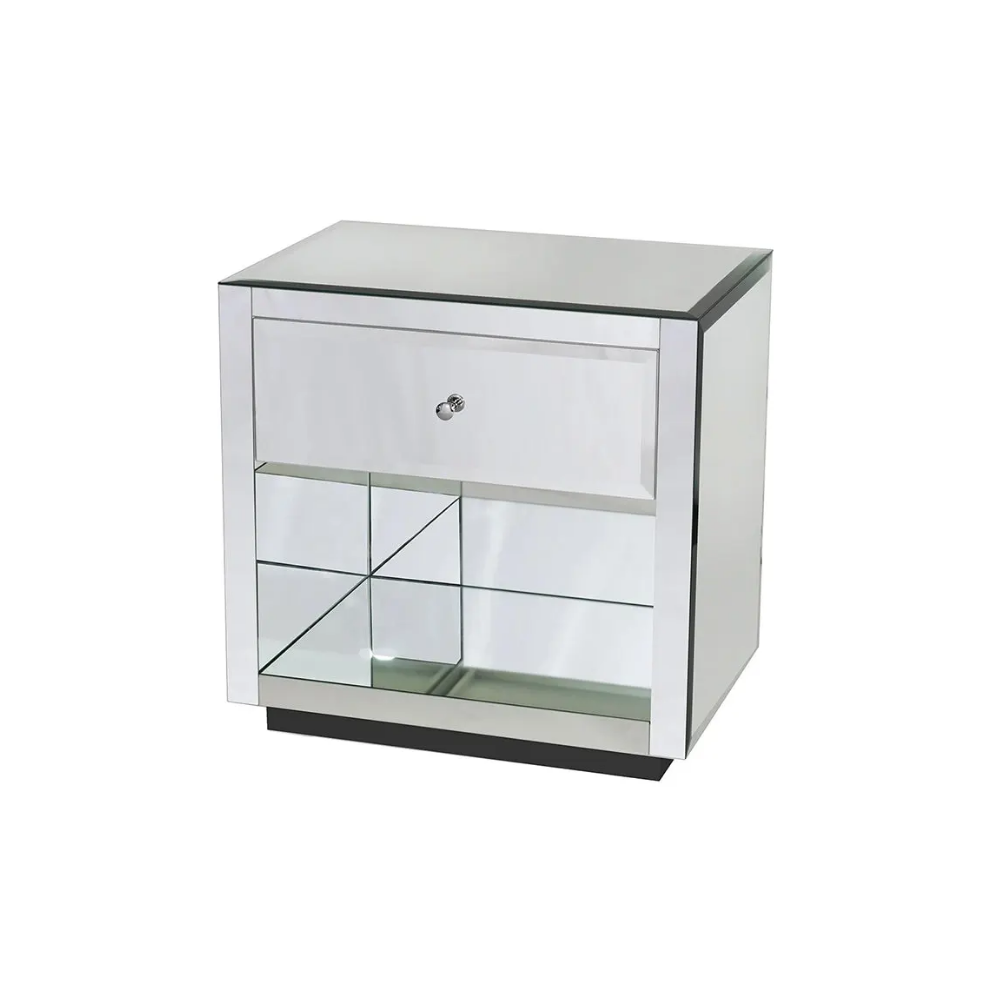 Зеркальная тумба “Сидни” – это стильная и элегантная тумба, которая станет изысканным дополнением вашего интерьера. Ее лаконичный дизайн и правильная квадратная форма подчеркивают современную эстетику, а зеркальные поверхности добавляют помещению легкость и визуальный объем. Над просторной столешницей расположен аккуратный выдвижной ящик – идеальное место для хранения мелочей. В открытом нижнем отсеке можно красиво разместить книги, декоративные элементы или другие предметы, создавая уютную атмосферу. Зеркальная тумба “Сидни” гармонично впишется в гостиную, спальню или прихожую, сочетая в себе функциональность и стиль. Идеальный выбор для тех, кто ценит элегантность и порядок! Добавьте тумбу “Сидни” в ваш интерьер – и наслаждайтесь ее практичностью и безупречным внешним видом!