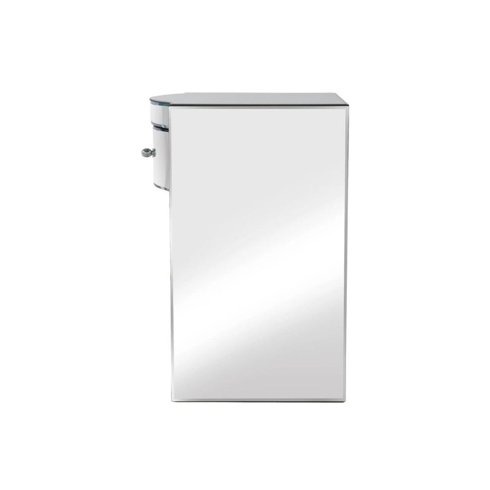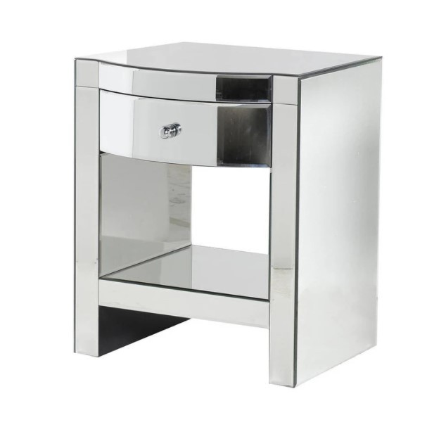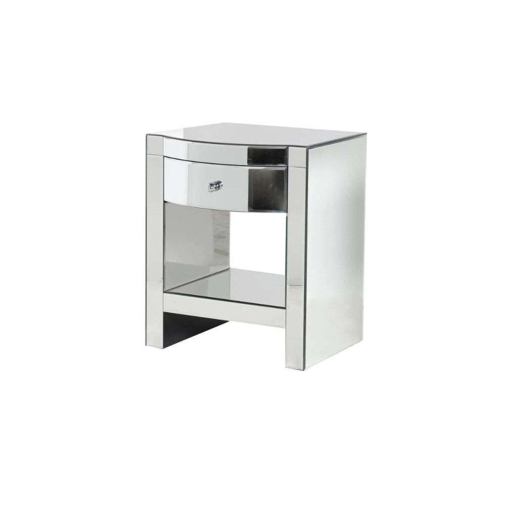 Зеркальная тумба “Николь” – это элегантный и функциональный прикроватный зеркальный столик. Этот предмет мебели станет неотъемлемым элементом вашей спальни, придавая ей роскошный и изысканный вид. Стол оснащен одним выдвижным ящиком, что делает его идеальным местом для хранения различных мелочей, украшений, обеспечивая вам удобный доступ к необходимым предметам. Ящик легко выдвигается и закрывается, обеспечивая плавное использование. Особенностью этого стола являются его полностью зеркальные панели, которые составляют структуру стола. Эти зеркальные панели создают ощущение невесомости и легкости, делая стол идеальным дополнением к современному интерьеру. Они не только отражают окружающее пространство, но и визуально увеличивают помещение, делая его более просторным и светлым. Он отлично впишется как в современный, так и в классический дизайн, создавая прекрасное гармоничное сочетание. Этот прикроватный столик также отлично сочетается с другими предметами мебели из этой коллекции, включая консольный стол “Скарлетт” из той же серии. Комбинирование различных элементов этой серии позволит создать полноценный и стильный вид в вашей спальне, добавляя ей уют и гармонию.