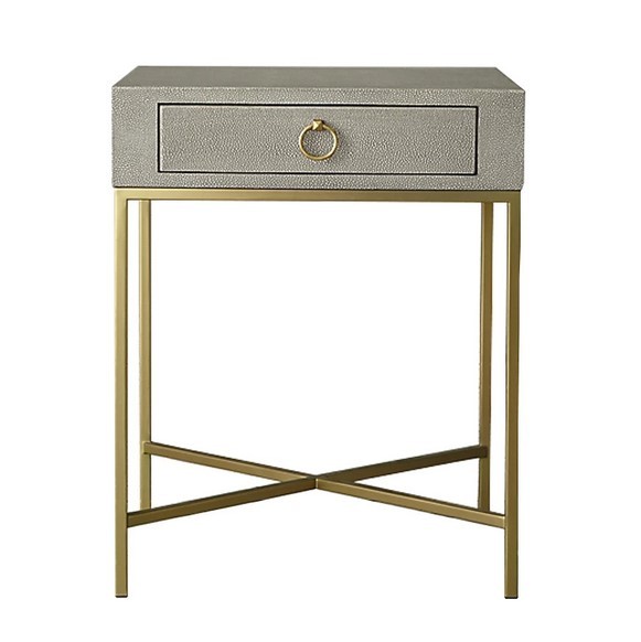 Серая прикроватная тумба “Далтон” – стильное и элегантное решение для вашей спальни. Ее сдержанные формы и изысканные детали делают ее идеальным дополнением к любому интерьеру. Тумба имеет квадратную столешницу, которая целиком отделана серой кожей с точным воспроизведением текстуры и рисунка натуральной шкуры ската. Это добавляет изделию оригинальности и вневременного стиля. Ножки в тёплой цветовой гамме – латунь, придают тумбе изысканный и завершающий штрих. Эта тумба не только эстетически привлекательна, но и функциональна. Она предлагает удобное пространство для хранения рядом с вашей кроватью. Вы можете разместить на ней светильник, будильник, книгу или другие предметы, которые вы хотите иметь под рукой во время сна или перед сном. Серая прикроватная тумба “Далтон” также будет идеально сочетается с другими предметами мебели в вашей спальне. Ее нейтральный цвет и классический дизайн позволяют легко интегрировать ее в любой интерьерный стиль.