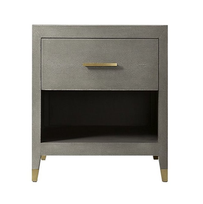 Серая прикроватная тумба “Олаф” — это элегантный и стильный элемент интерьера, который придаст вашему пространству утонченную атмосферу. Ее сдержанные формы обтянуты серой кожей, на которой точно воспроизведены текстура и рисунок натуральной шкуры ската, создавая уникальный визуальный эффект. Зауженные ножки из теплой латуни идеально дополняют общий дизайн, добавляя изысканности и легкости. Тумба “Олаф” станет не только практичным, но и красивым акцентом в вашей спальне, привнося в нее атмосферу роскоши и комфорта.