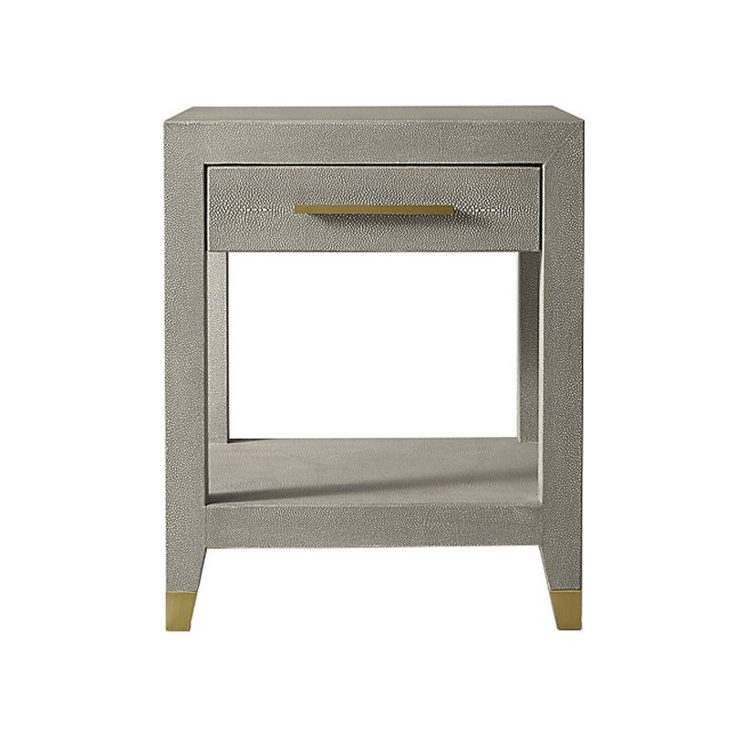 Бежевая прикроватная тумба “Кларенс” — это элегантный и стильный элемент для спальни, который станет акцентом вашего интерьера. Ее квадратная столешница, обтянутая бежевой кожей с точным воспроизведением текстуры и рисунка натуральной шкуры ската, создает уникальный и роскошный визуальный эффект. Зауженные ножки из теплой латуни придают тумбе легкость и утонченность, а также завершают её изысканный образ. “Кларенс” сочетает в себе практичность и элегантность, обеспечивая не только удобное место для хранения, но и добавляя в интерьер элемент настоящей роскоши.