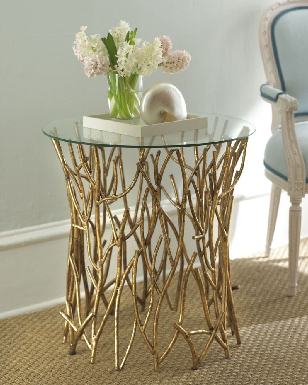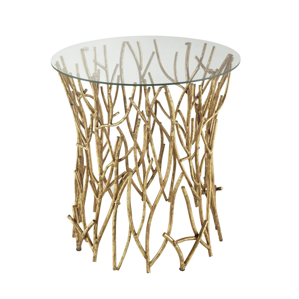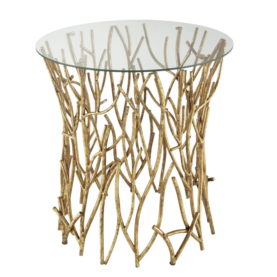 Золотой приставной столик “Лукас” – это изящный стол, который сочетает холодную строгость материалов и необычный дизайн. Круглая столешница из прозрачного закалённого стекла подчёркивает лёгкость конструкции. Основание выполнено в виде кованых железных ножек, напоминающих переплетённые ветки. Золотистый оттенок металла придаёт столу благородный блеск. Ажурное плетение основания создаёт эффект воздушности и утончённости. Стол идеально впишется в современные и классические интерьеры. “Лукас” станет элегантным акцентом в гостиной или зоне отдыха.