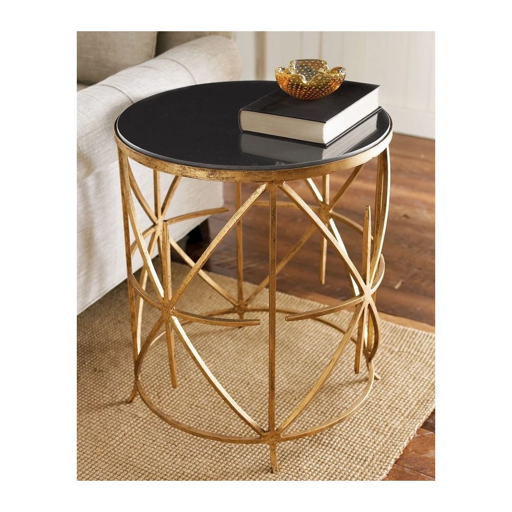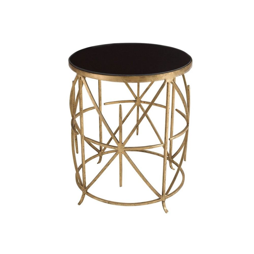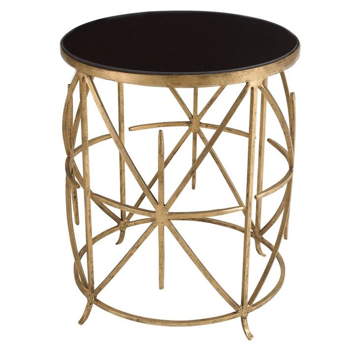 Золотой приставной столик “Доминик” – это предмет интерьера, который сочетает элегантность и смелый дизайн. Круглая столешница с чёрным покрытием контрастирует с золотым основанием. Металлическая конструкция выполнена в виде геометрических элементов, создающих эффект объёма и движения. Матовая текстура металла смягчает восприятие и добавляет глубину. Столик идеально впишется в интерьеры с элементами ар-деко или современного гламура. Размер делает его универсальным для гостиных, спален и будуаров. Его лаконичные формы и роскошные детали создают гармоничный баланс между современностью и классикой.