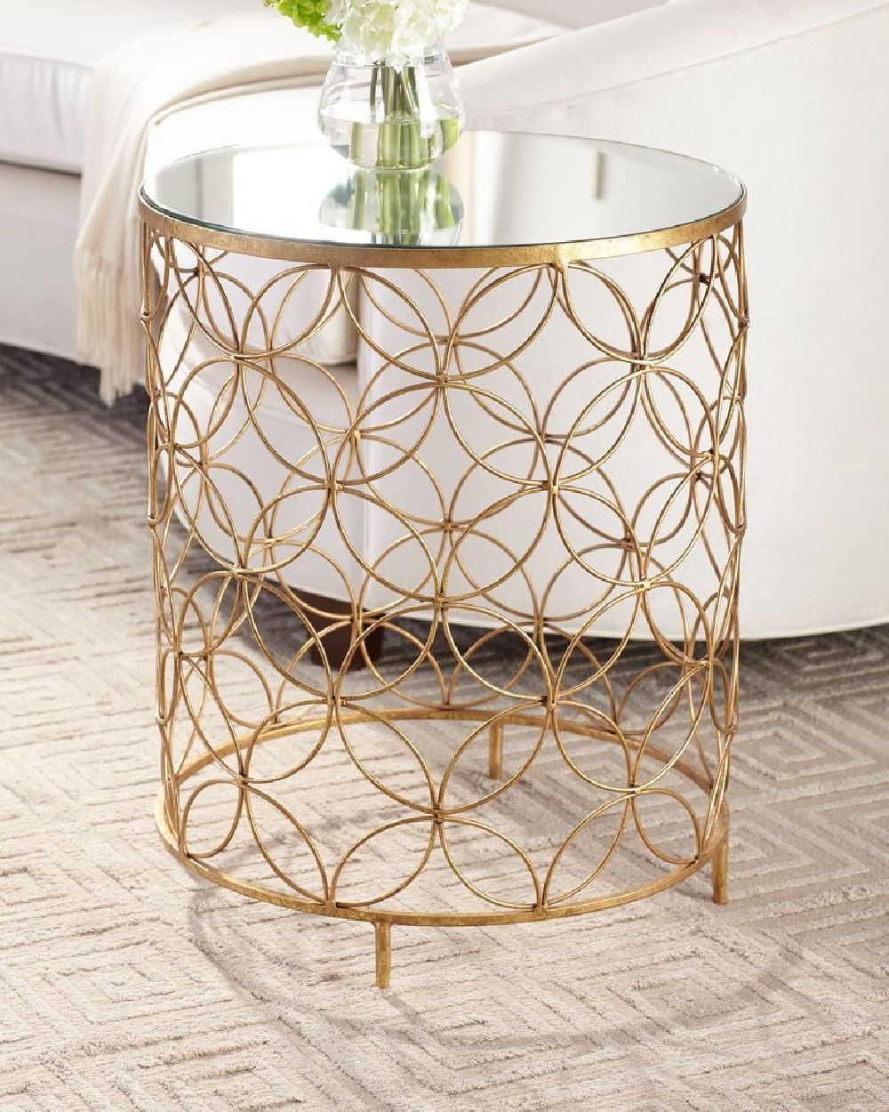 Золотой приставной столик “Такома” – изысканное сочетание современности и винтажного шарма. Металлическое основание в теплом золотом цвете обладает легким эффектом состаренности. Ажурный орнамент из повторяющихся кругов создает изящный рисунок, напоминающий цветочные лепестки. Золотое покрытие с деликатной патиной придает изделию благородный винтажный вид. Компактные размеры делают столик удобным для размещения в гостиной, спальне или будуаре. Отражения в зеркальной поверхности визуально расширяют пространство. “Такома” гармонично впишется в интерьеры в стиле неоклассика, ар-деко или современная классика. Этот столик станет не только функциональным предметом, но и эффектным украшением интерьера.