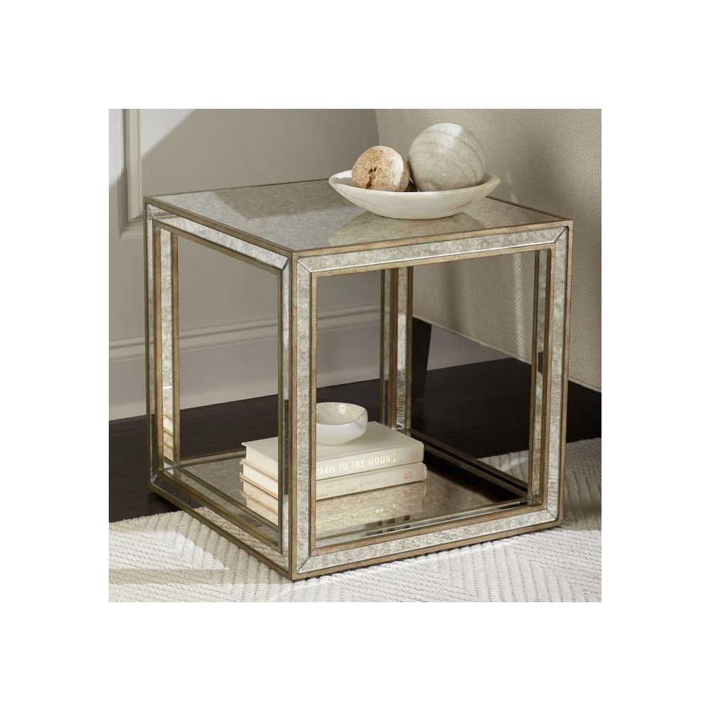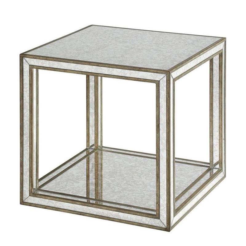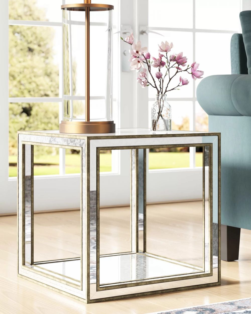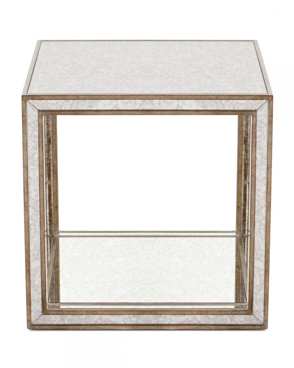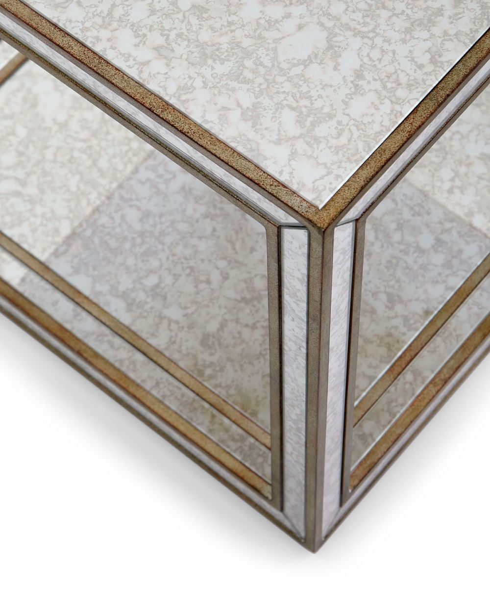 Зеркальный приставной стол “Фиона” – это предмет интерьера выполненный в форме элегантного куба с зеркальными гранями. Каждая сторона украшена тонкой рамой из дерева с золотистой окантовкой. Состаренные зеркала создают эффект винтажного шика. Золотое обрамление добавляет дизайну ноту роскоши. Компактные размеры делают стол удобным для любого уголка дома. На его поверхности идеально разместятся книги, кофе или декоративные аксессуары. “Фиона” прекрасно впишется в классические и современные интерьеры. Зеркальные грани визуально расширяют пространство. Этот столик станет не только функциональным, но и стильным украшением вашего дома.
