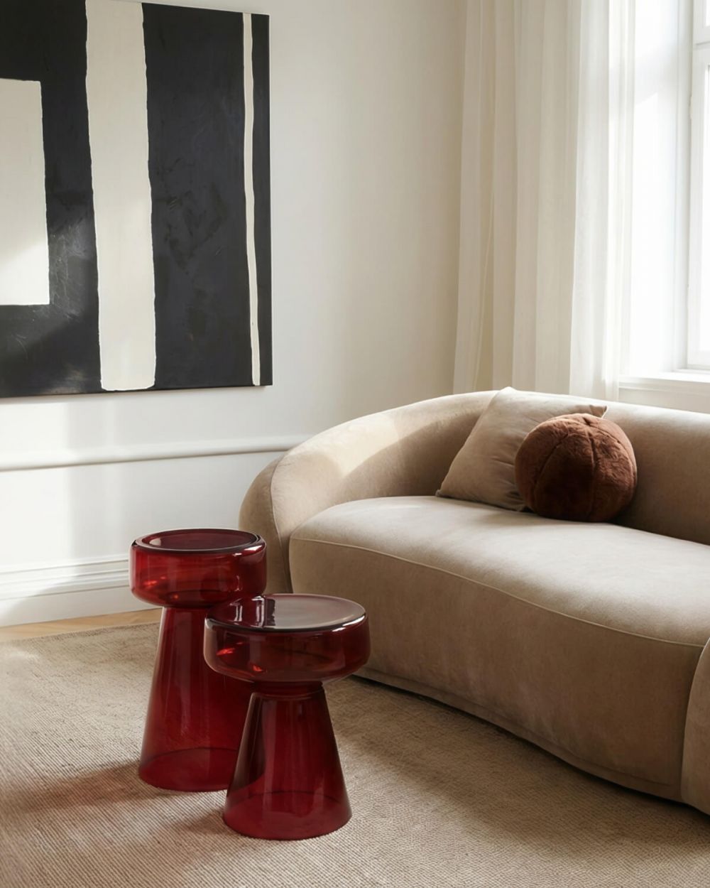 Рядом с диваном или креслом. Идеальный спутник для бокала вина, книги или планшета. Насыщенный бордовый цвет станет ярким акцентом, создающим настроение.