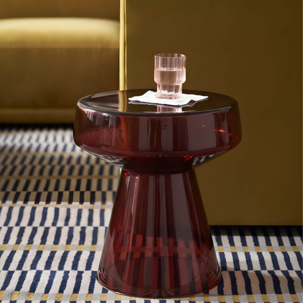 Бордовый приставной столик «Флумс» диаметром 37 см – это идеальный выбор для тех, кто хочет добавить интерьеру глубины, страсти и статусности в компактном формате. Его насыщенный винный оттенок, скульптурная форма и прозрачная столешница создают уникальный эффект – драматичный цветной акцент, который не перегружает пространство, а обогащает его. Качественное закаленное стекло и продуманная конструкция гарантируют долгий срок службы и эстетическое удовольствие.
