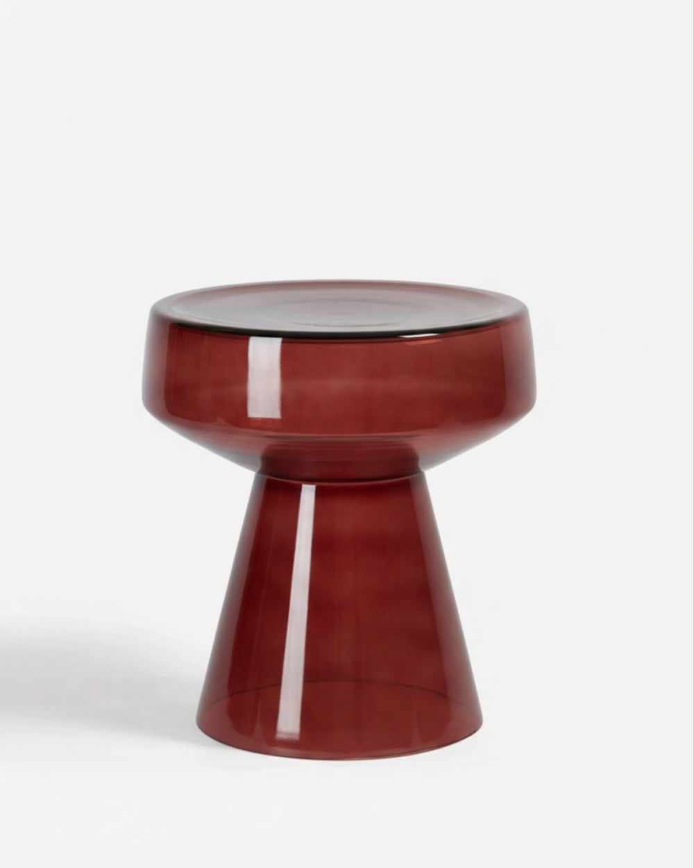 Бордовый приставной столик «Флумс» диаметром 37 см решает эту задачу с редкой элегантностью. Он выполнен из закаленного стекла глубокого винного оттенка бургунди – насыщенного, благородного, напоминающего о дорогих винах и королевской роскоши. При этом столешница остается прозрачной, создавая удивительный эффект объема и воздушности: насыщенный цвет есть, он глубокий и выразительный, но он не давит, не перегружает пространство.