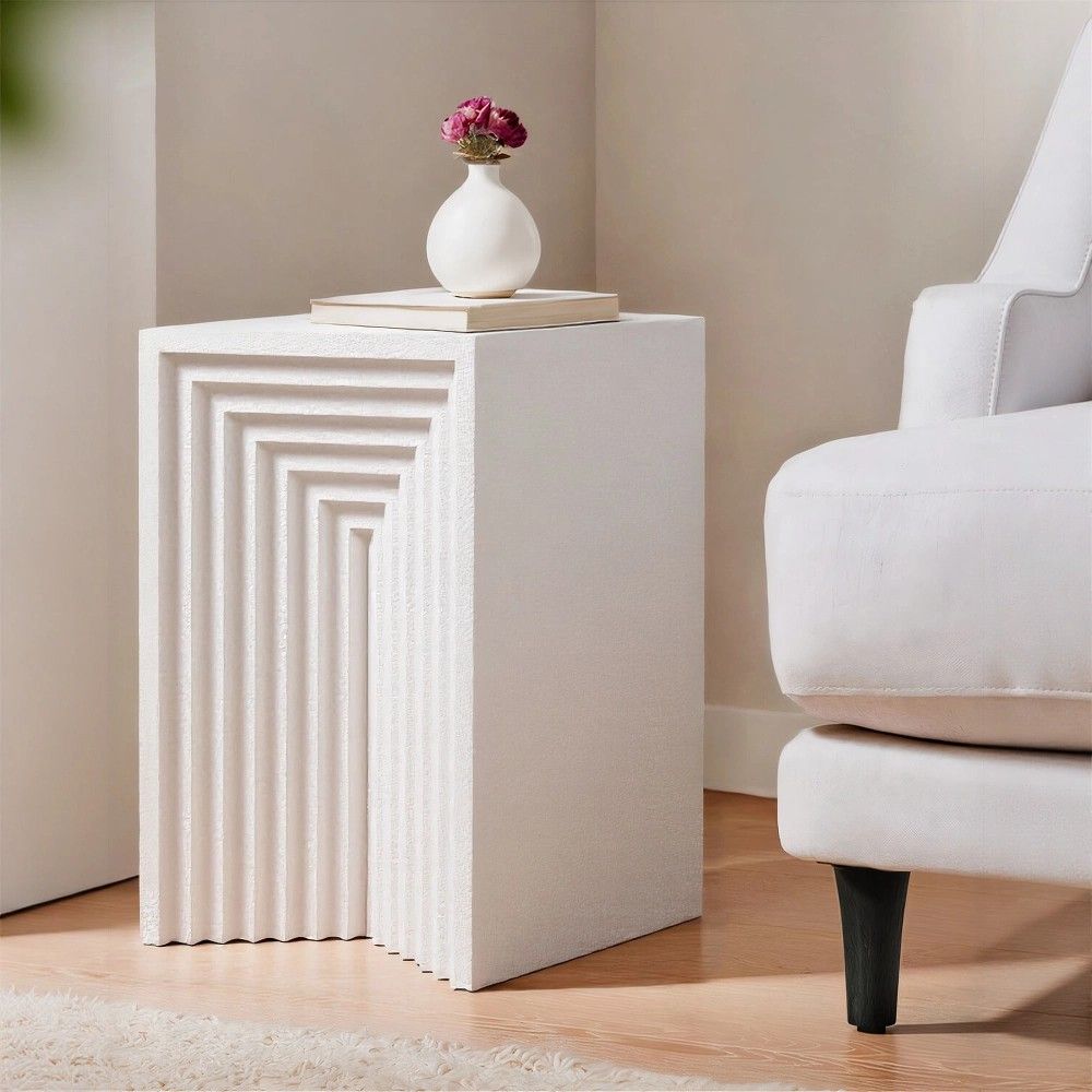 В гостиной рядом с диваном. Идеальный спутник для книг, напитков или декора. Нежный бежевый узор добавит интерьеру тепла и станет стильным акцентом.