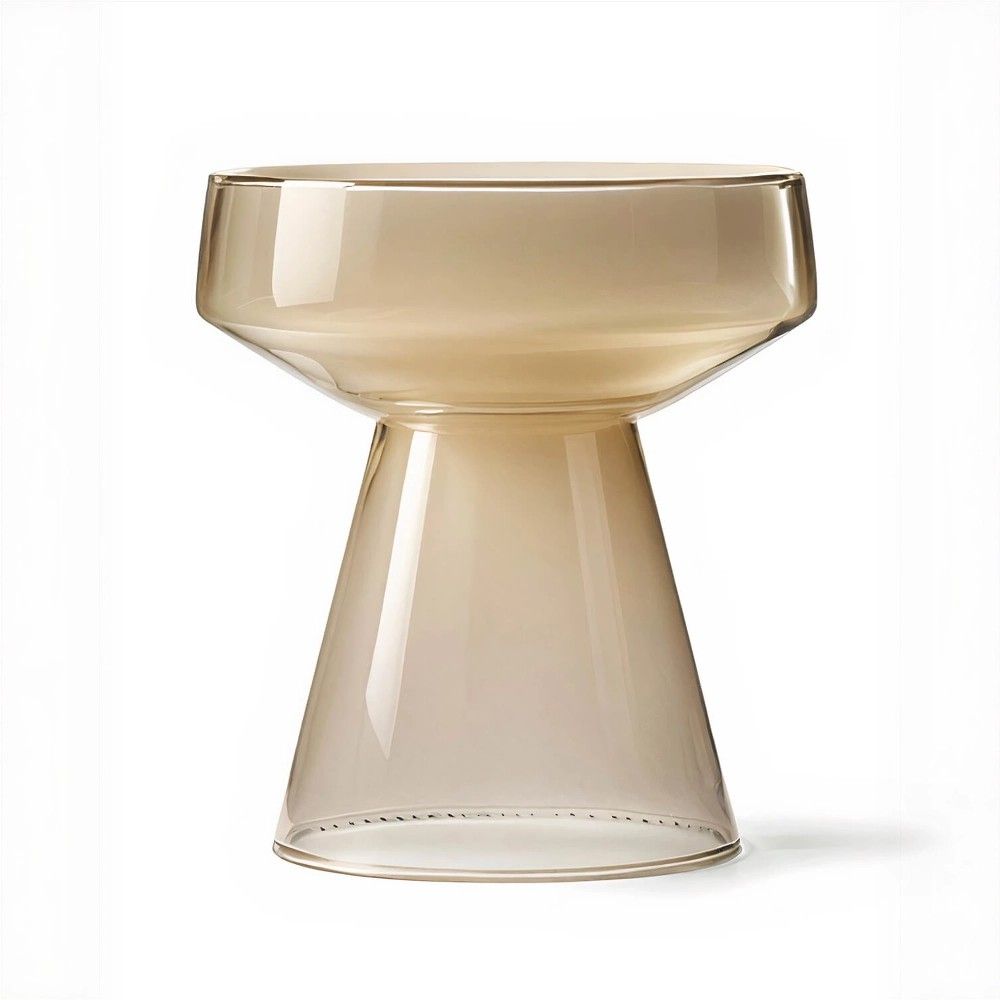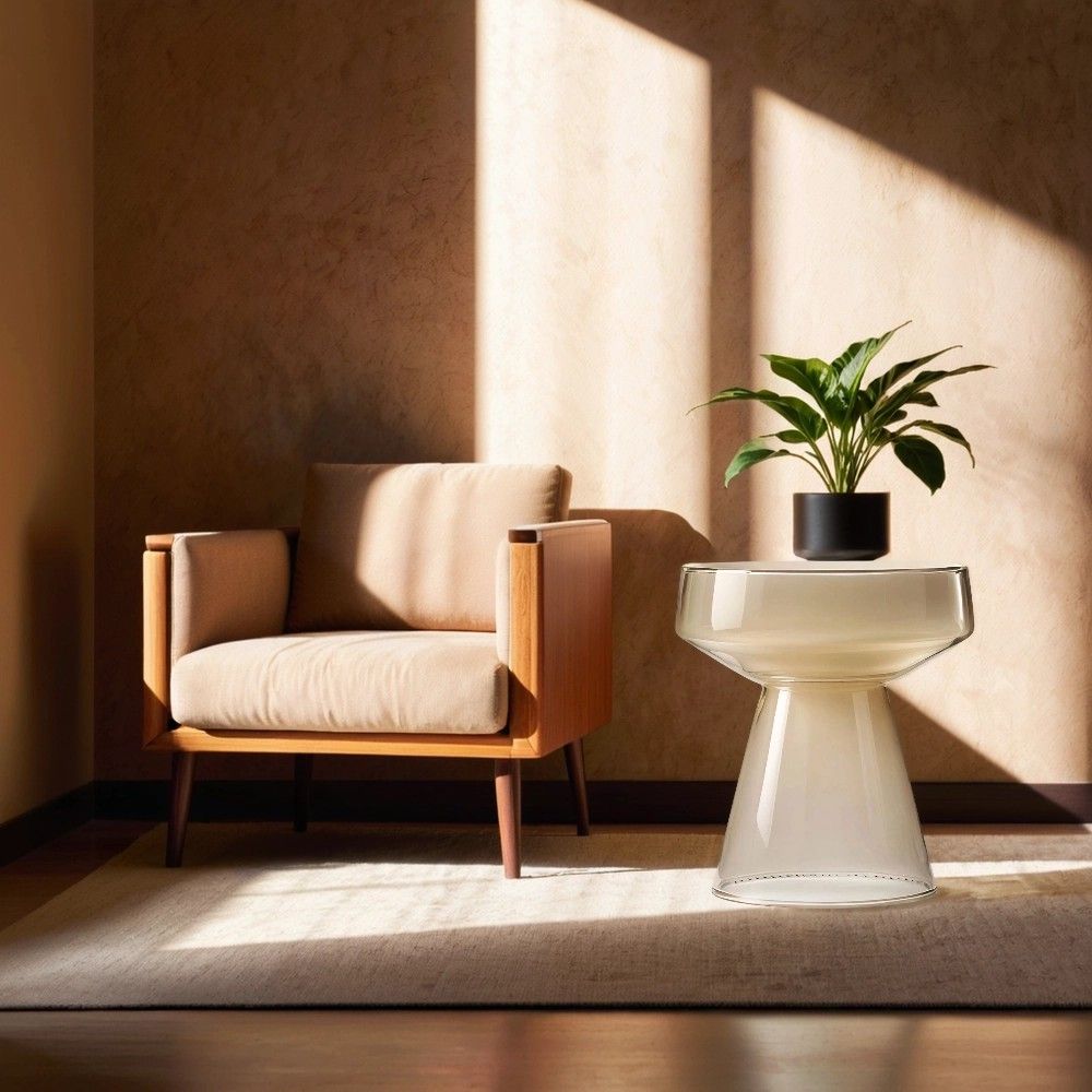 Серо-коричневый приставной столик «Флумс» воплощает этот баланс с редкой элегантностью. Он выполнен из закаленного стекла сложного оттенка тауп – глубокого, благородного, напоминающего о природных материалах: камне, песке, коре дерева. При этом столешница остается прозрачной, создавая удивительный эффект объема и воздушности: цвет есть, он насыщенный и выразительный, но он не давит, не перегружает пространство.