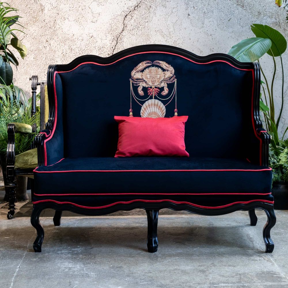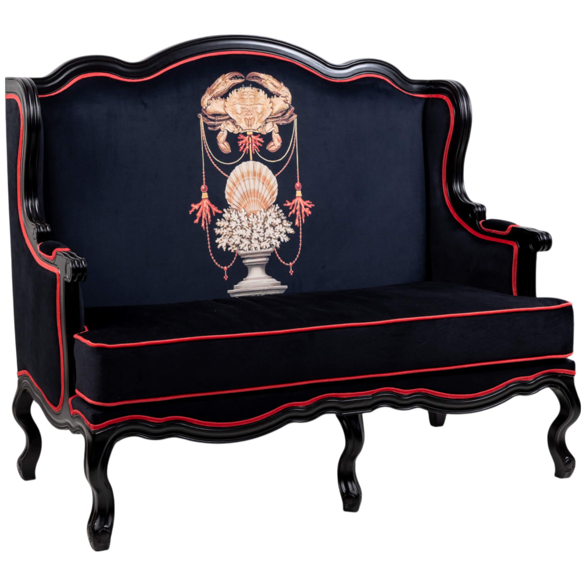 Этот диван создан для тех, кто устал от типовых решений и ищет способ подчеркнуть индивидуальность своего интерьера. Строгий черный каркас и обивка с коралловым кантом не просто заполняют пространство, а становятся его смысловым и стилевым центром, придавая обстановке художественную завершенность и шарм.