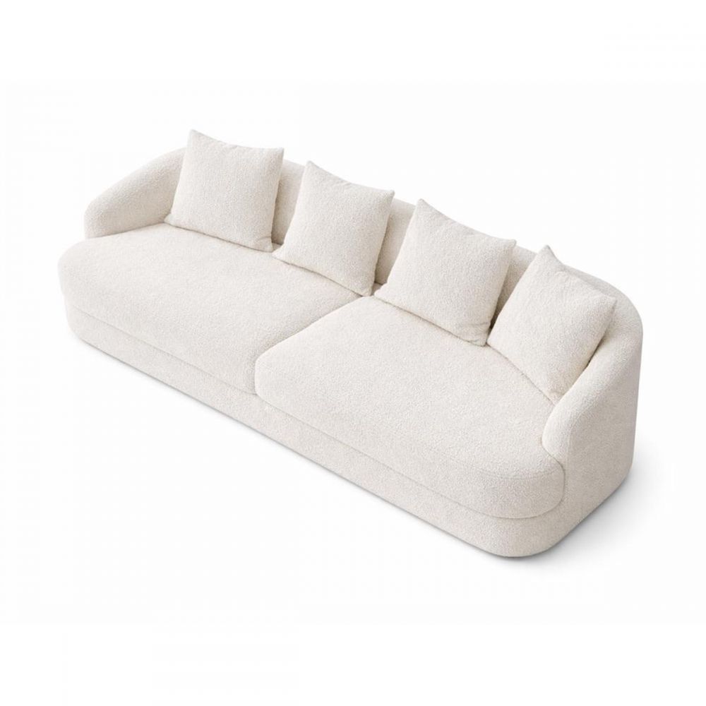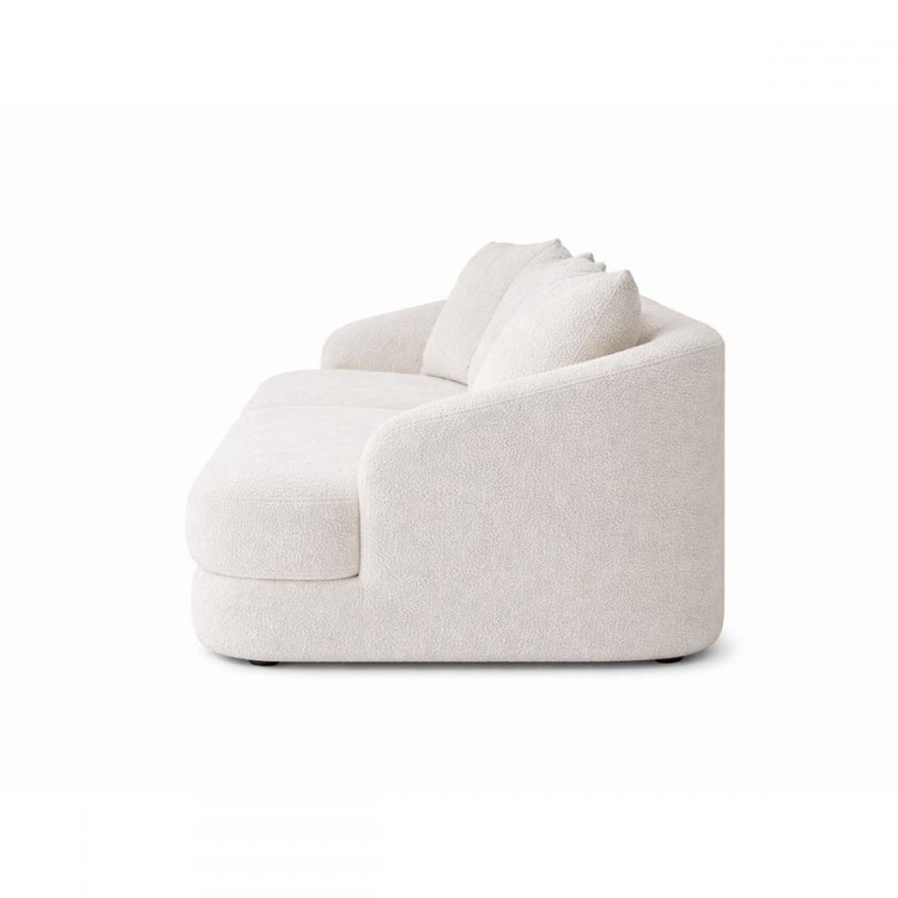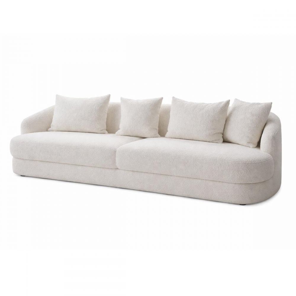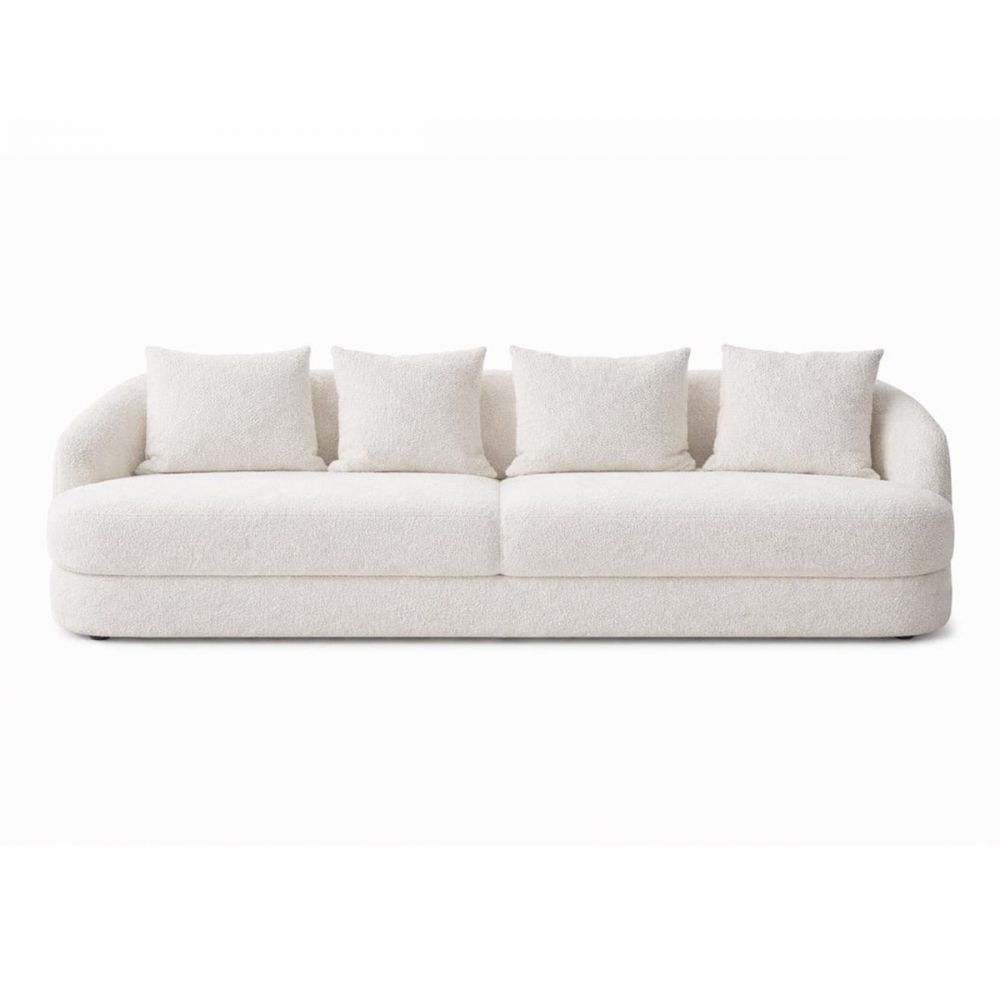 Длина: 280 см. Глубина: 106 см. Высота: 68 см. Каркас: березовая фанера. Наполнитель: ППУ. Опоры: скрытое основание. Обивка: букле, рогожка, шенилл, скотчгард, вельвет, велюр, флок, жаккард на выбор. Цвет: белый (и другие на выбор). Назначение: гостиная, зал, студия, домашний кинотеатр.