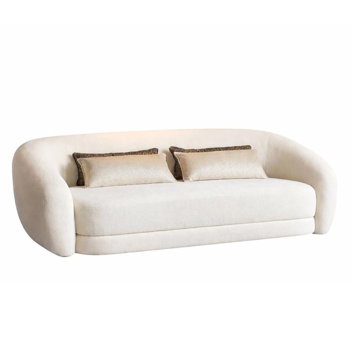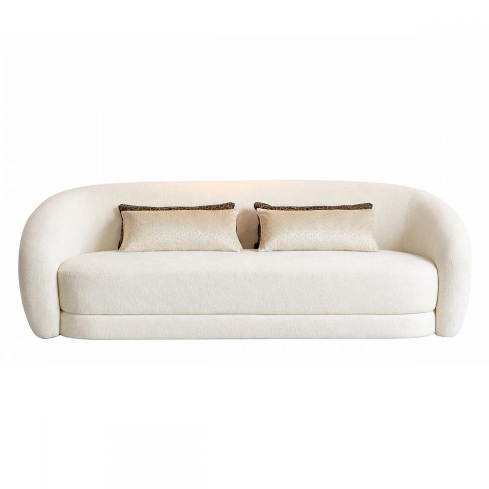 Длина: 260 см. Глубина: 110 см. Высота: 68 см. Каркас: березовая фанера. Наполнитель: ППУ. Опоры: скрытое основание. Обивка: букле, рогожка, шенилл, скотчгард, вельвет, велюр, флок, жаккард на выбор. Цвет: белый (и другие на выбор). Назначение: гостиная, зал, студия, прихожая.