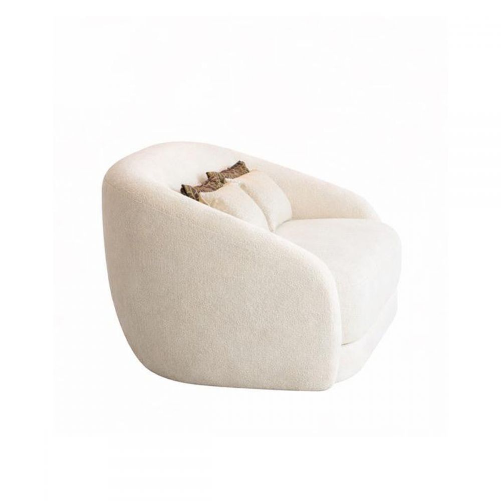 Обивка — на выбор из восьми материалов. Букле — модная «кудрявая» фактура, мягкая и объёмная. Рогожка — износостойкая, практичная, для активной повседневной жизни. Шенилл — приятная к телу, тёплая, уютная. Скотчгард — с защитой от воды и пятен, идеален для семей с детьми. Вельвет и велюр — благородный блеск, бархатистость, статусность. Флок — прочный, устойчивый к когтям домашних животных. Жаккард — плотный, с рисунком, для ценителей деталей.