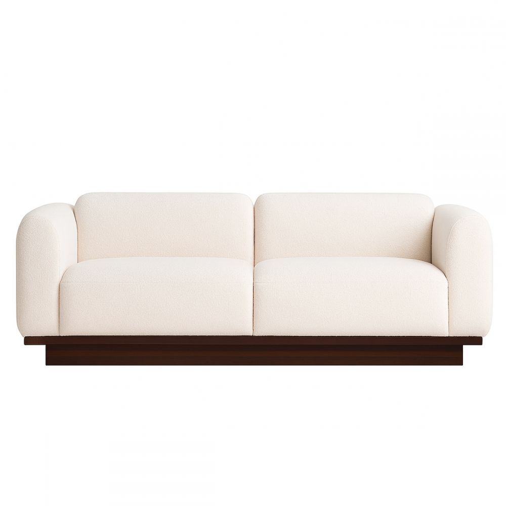 Длина: 256 см. Глубина: 106 см. Высота: 65 см. Каркас: березовая фанера, МДФ, шпон. Наполнитель: ППУ. Опоры: деревянное основание. Обивка: букле, рогожка, шенилл, скотчгард, вельвет, велюр, флок, жаккард на выбор. Цвет обивки: белый (и другие на выбор). Назначение: гостиная, кабинет, зона чтения.