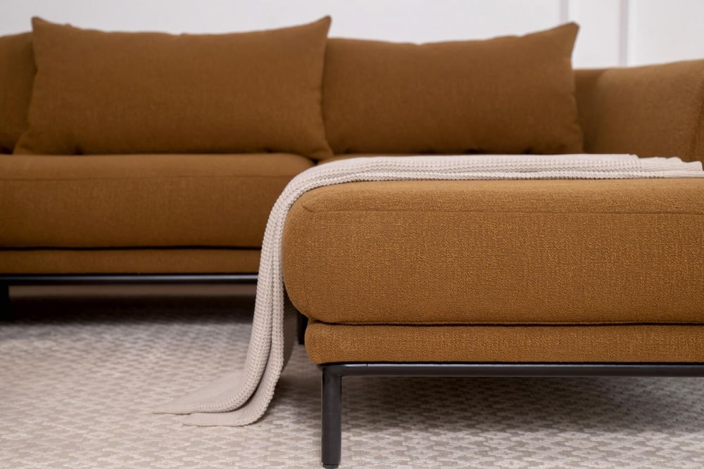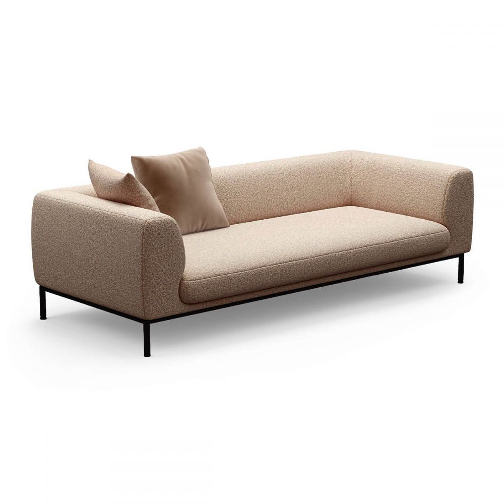 Каркас: Массив бука Опора: Металлокаркас (контрастный цвет) Наполнитель: ППУ высокой плотности Длина: 2350 мм Глубина: 1040 мм Высота: 680 мм Ткань: На выбор (рогожка, букле, шенилл, вельвет, жаккард, скотчгард и др.) Цвет: Любой из палитры Стиль: Современный, минимализм, сканди, лофт