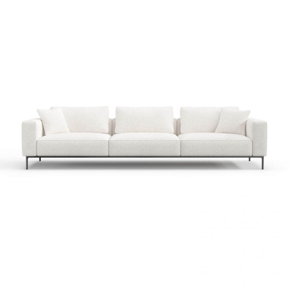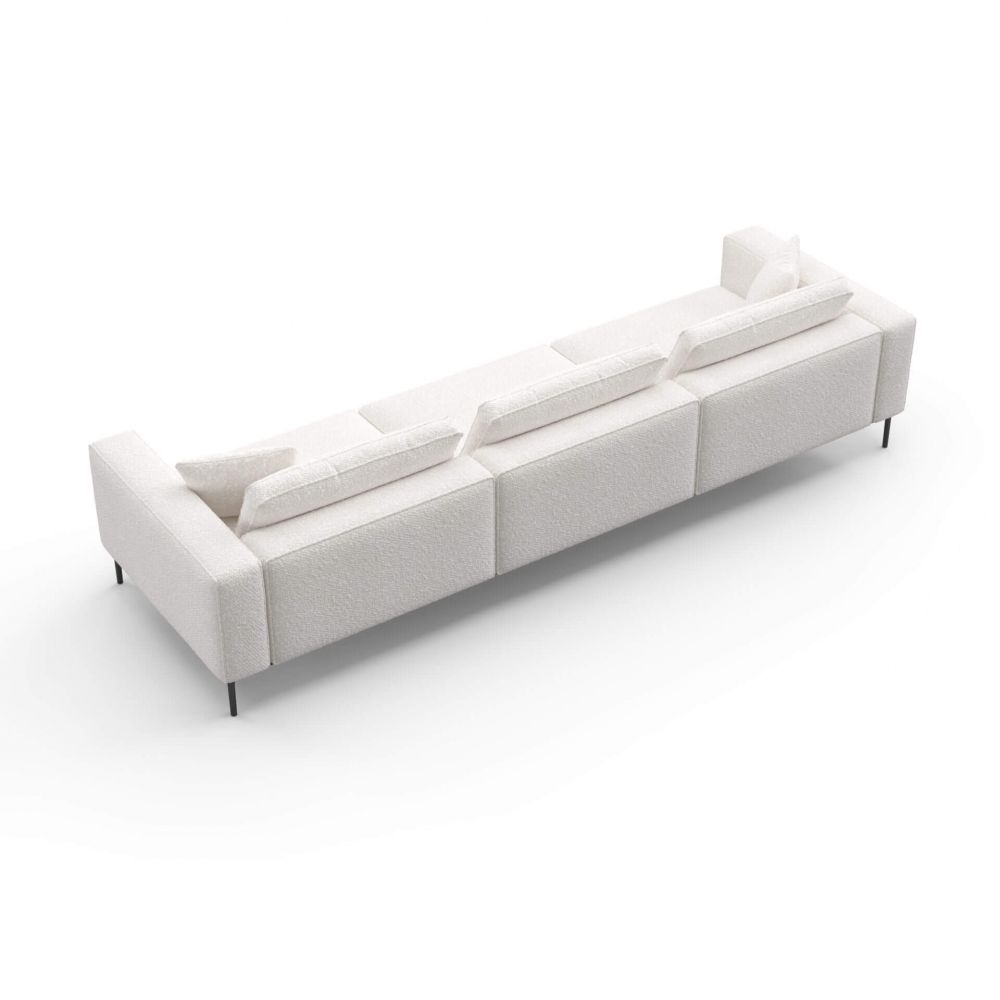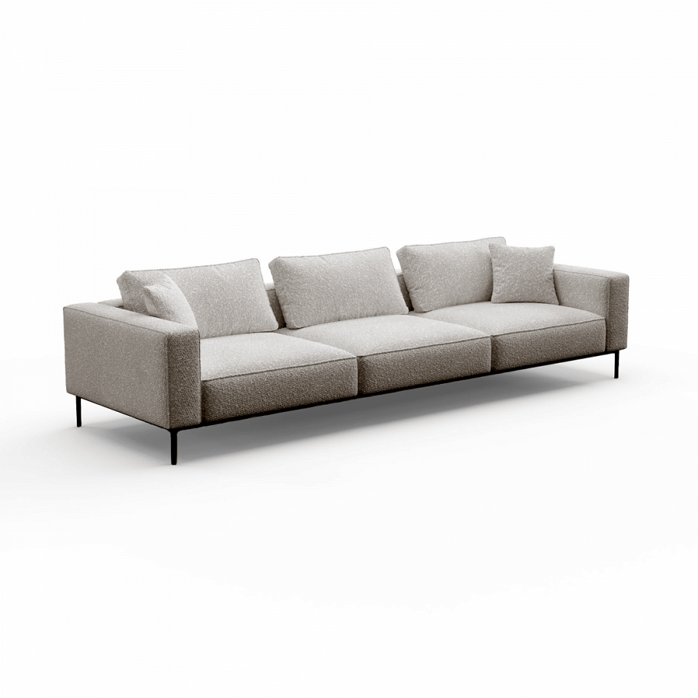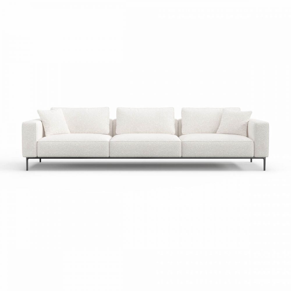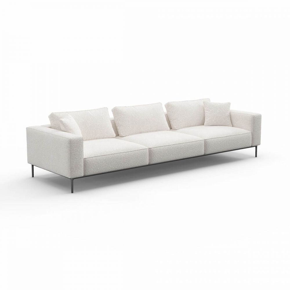 Модель: Вельт Габариты: 3200 мм (длина) x 1060 мм (глубина) x 820 мм (высота) Стиль: современный, лаконичный, скандинавский Обивка: ткань букле Цвет: молочный (кремовый, сливочный) Фактура: объемная, меланжевая Каркас: березовая фанера Наполнитель сиденья: независимый пружинный блок + ППУ Опоры: металлические, тонкие Спинка: невысокая Форма: обтекаемая, плавные линии Конфигурации: 4 варианта на выбор Функция: подходит для зонирования пространства Назначение: для гостиных, студий, квартир-студий Сезон: всесезонно