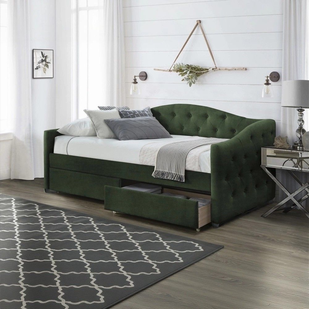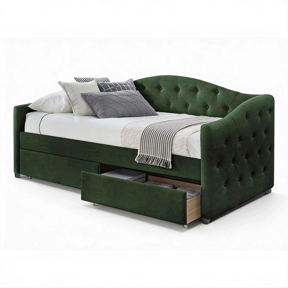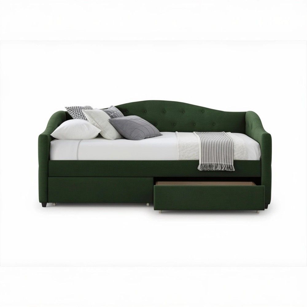 Кровать Halmar ALOHA — это ответ на оба запроса. Она не просто место для сна, а полноценный элемент интерьера, который задает тон всей комнате. Глубокий темно-зеленый оттенок и мягкая бархатистая обивка притягивают взгляд и создают атмосферу уюта, а встроенные ящики решают проблему хранения, не занимая лишнего пространства.