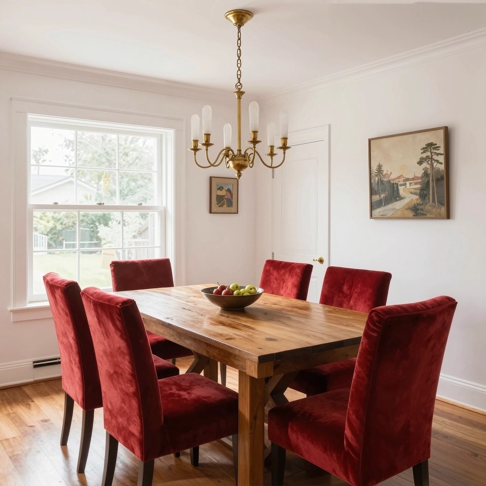Начните с безупречного фона — стены, окрашенные в Universal Khaki, молочно-белый или мягкий песочный. На этом спокойном полотне смело играйте акцентами цвета бургунди, терракоты или испанского красного. Представьте диван цвета спелой вишни на фоне бежевой стены. Связующим звеном в этой истории станут текстуры: массив дуба или ореха в мебели, латунные детали светильников, грубоватый лён на подушках.