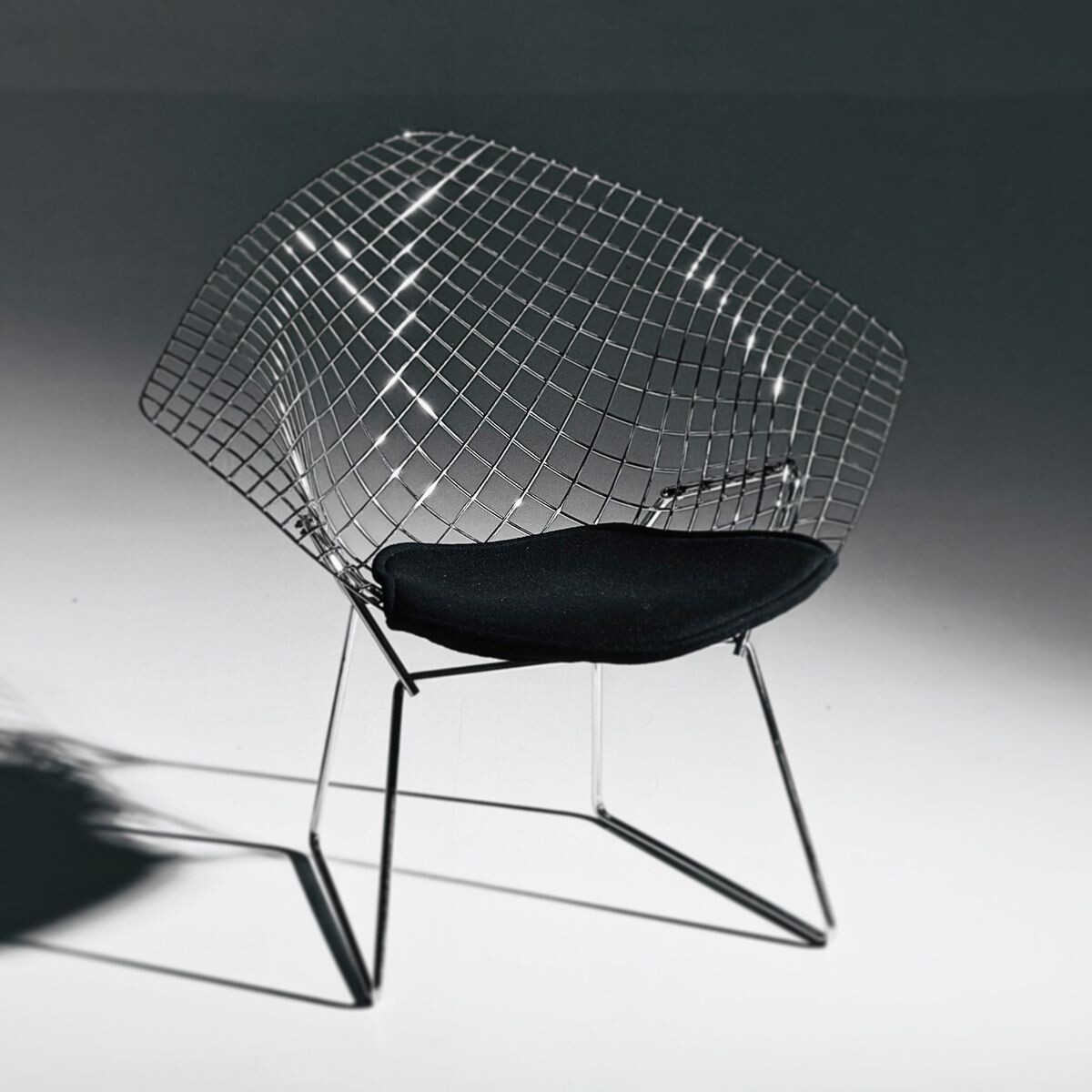 Бертойя был скульптором и ювелиром. Создавая кресло для Knoll, он подошел к задаче как художник. Результат — воздушная, ажурная форма из сварных стальных прутьев, напоминающая ограненный алмаз.
