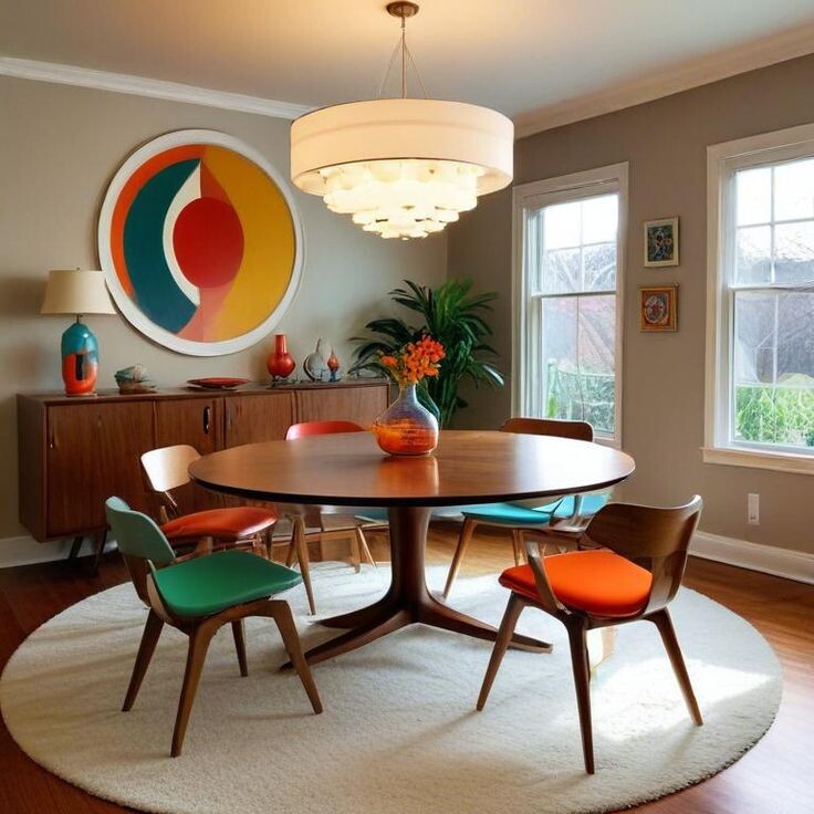 MCM обожает контраст. Если у вас прямоугольный диван — добавьте круглый журнальный столик. Если комод строгой геометрии — поставьте рядом кресло с плавными, почти биоморфными очертаниями. Этот приём называется «органический модернизм» и был визитной карточкой Ээро Сааринена и Алвара Аалто.