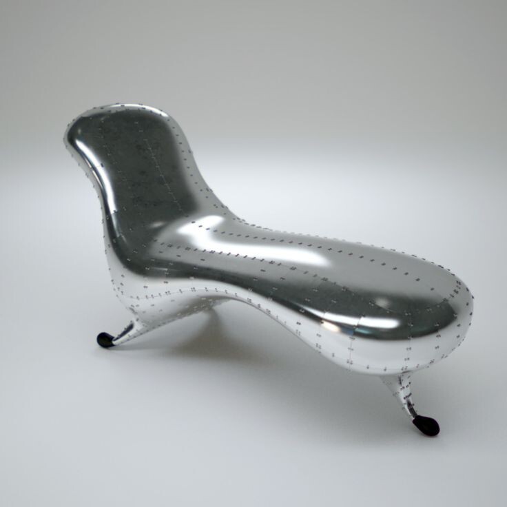 Представьте себе форму, напоминающую каплю или фюзеляж самолета. Ньюсон вручную вырезал из листового алюминия сотни пластин и приварил их к корпусу из стеклопластика. Получилось нечто футуристическое, инопланетное, текучее. Это даже не кресло в привычном смысле — это скульптура, на которой можно полулежать.